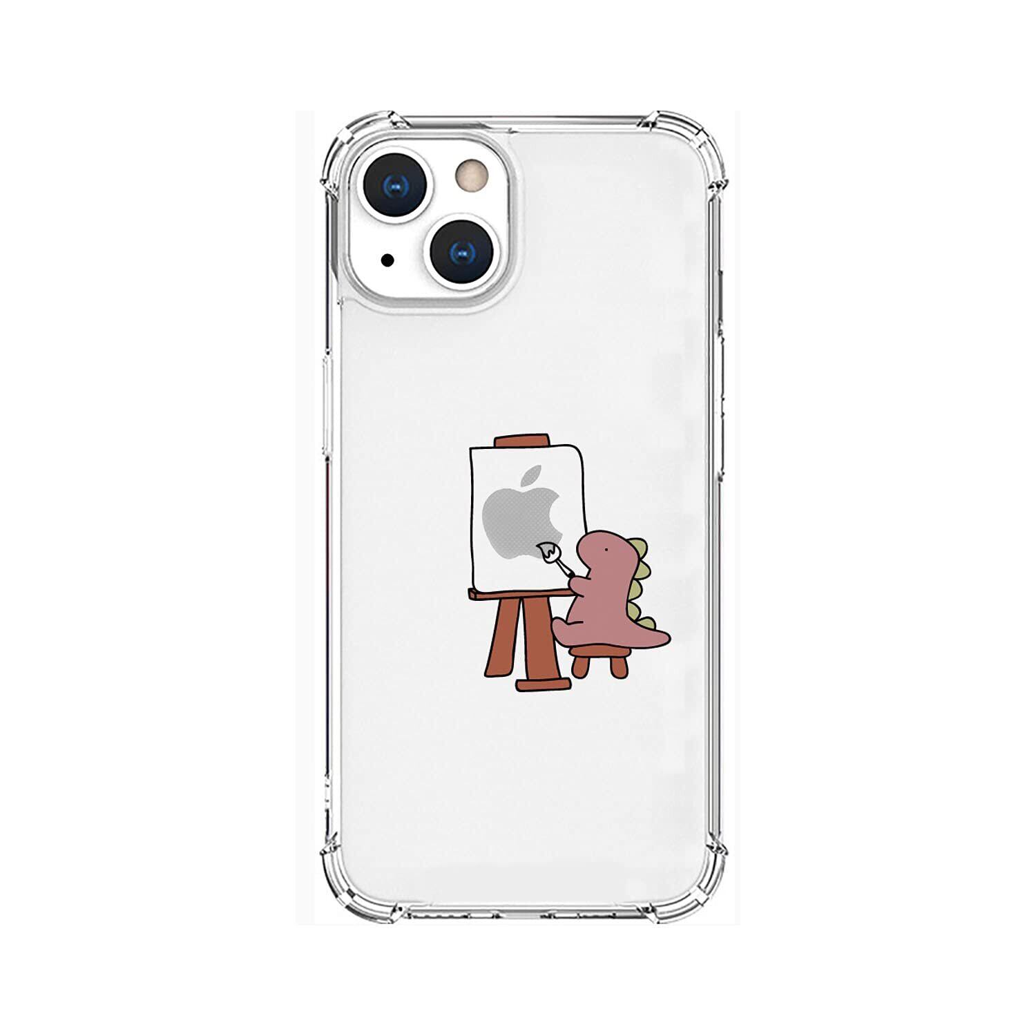 AKAN iPhone 13 ケース ソフト タフ [ エイカン 人気 恐竜 キャラクター 透明 TPU 密着痕防止 4つ角 エアクッション 耐衝撃 防塵 ワイヤレス充電 ] おしごとザウルス 画家 ピンク AK20972i13【国内正規品】
