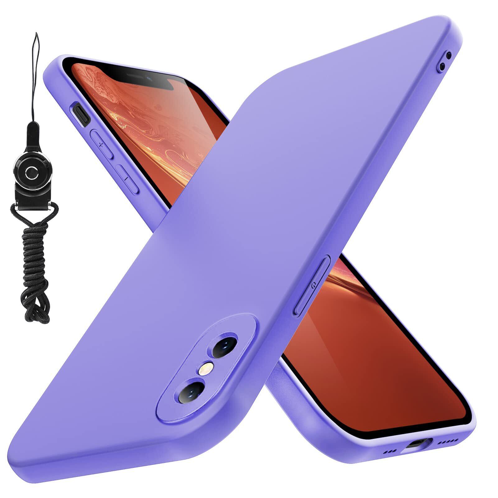 iphone xs ケース シリコン 薄型 スリム 磨り表面 指紋防止カバー 柔らかい裏地 アイフォン xs ケース耐衝撃 カバー ネックストラップ米軍MIL規格 ワイヤレス充電対応ストラップホール付き 黄ばみなし レンズ保護 滑り止め 柔軟性 擦り傷防止 紫N409-97