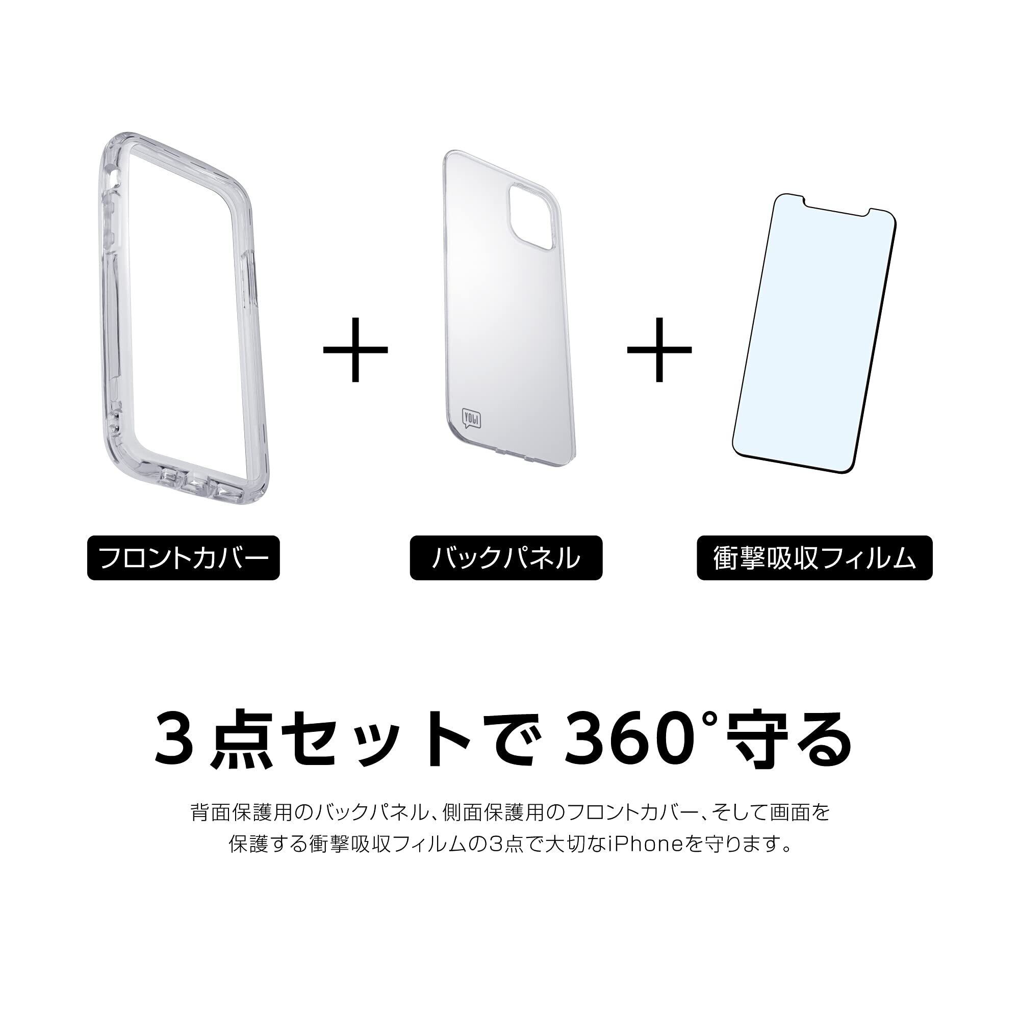 衝撃から守るフルカバー構造!フレーム、衝撃吸収フィルム、バックパネルの3点でしっかりと保護します。