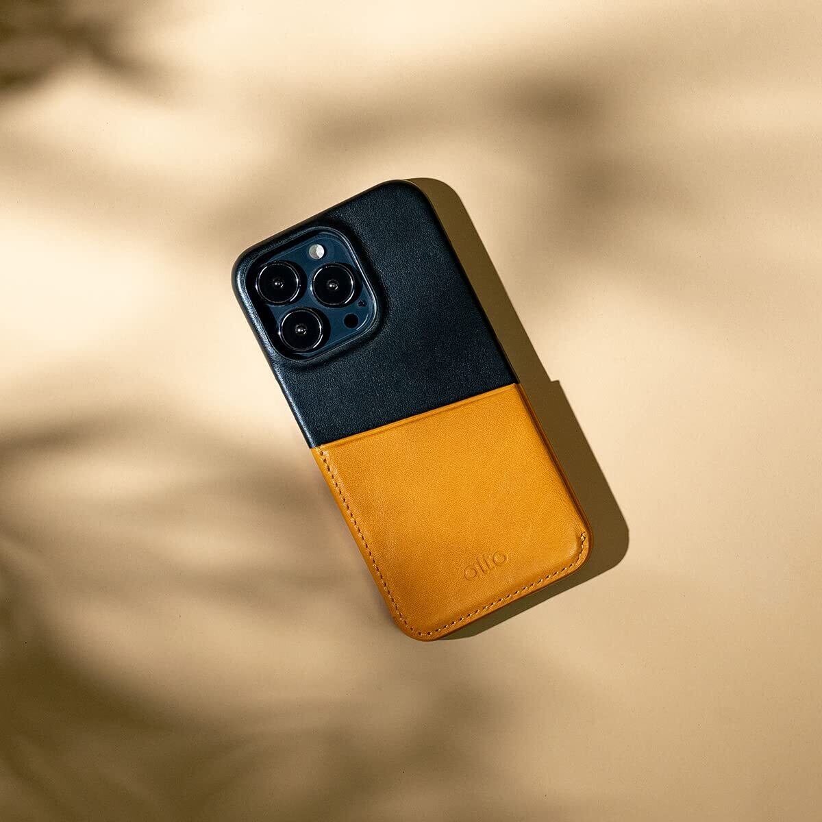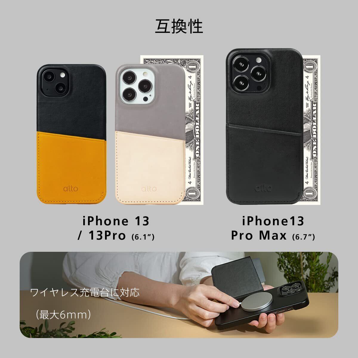 Alto Metro iPhone 13 Pro Max カードポケット付き 本革 イタリア製 ハンドメイド レザーケース (キャラメル/ブラック)