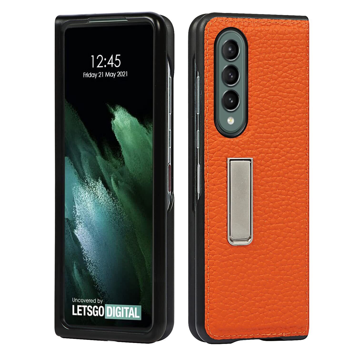 【数量限定】Galaxy Z Fold3 ケース Z fold3 5G ケース 適用 z fold3 カバー SC-55B ケース SCG11 ケース サムスン ギャラクシー フォールド3 SCG11 au SC-55B docomo 対応 スマホケース Fold3 カバー zfold3 Z Fold 3 SC55B ケース SCG11ケース ギャラクシーz fold3 ケース 携帯カバー case 【iCoverCase】 ハードケース スマホケース 本革 縫製加工 スタンド ライチ模様 オレンジ | BOSSO