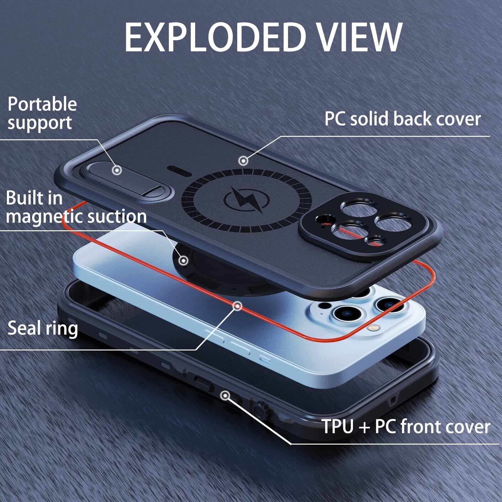 防水 iPhone 13 pro max ケース 完全防水 頑丈 防塵 水下 薄型 軽量 耐衝撃 スタンド機能 アウトドア ストラップ付き IP68米軍規格 360度全面保護 両面カバー アイフォン13 プロマックス 防水 カバー スマホ防水ケース 保護タッチパネルスクリーン付き (iPhone13promax 黒)