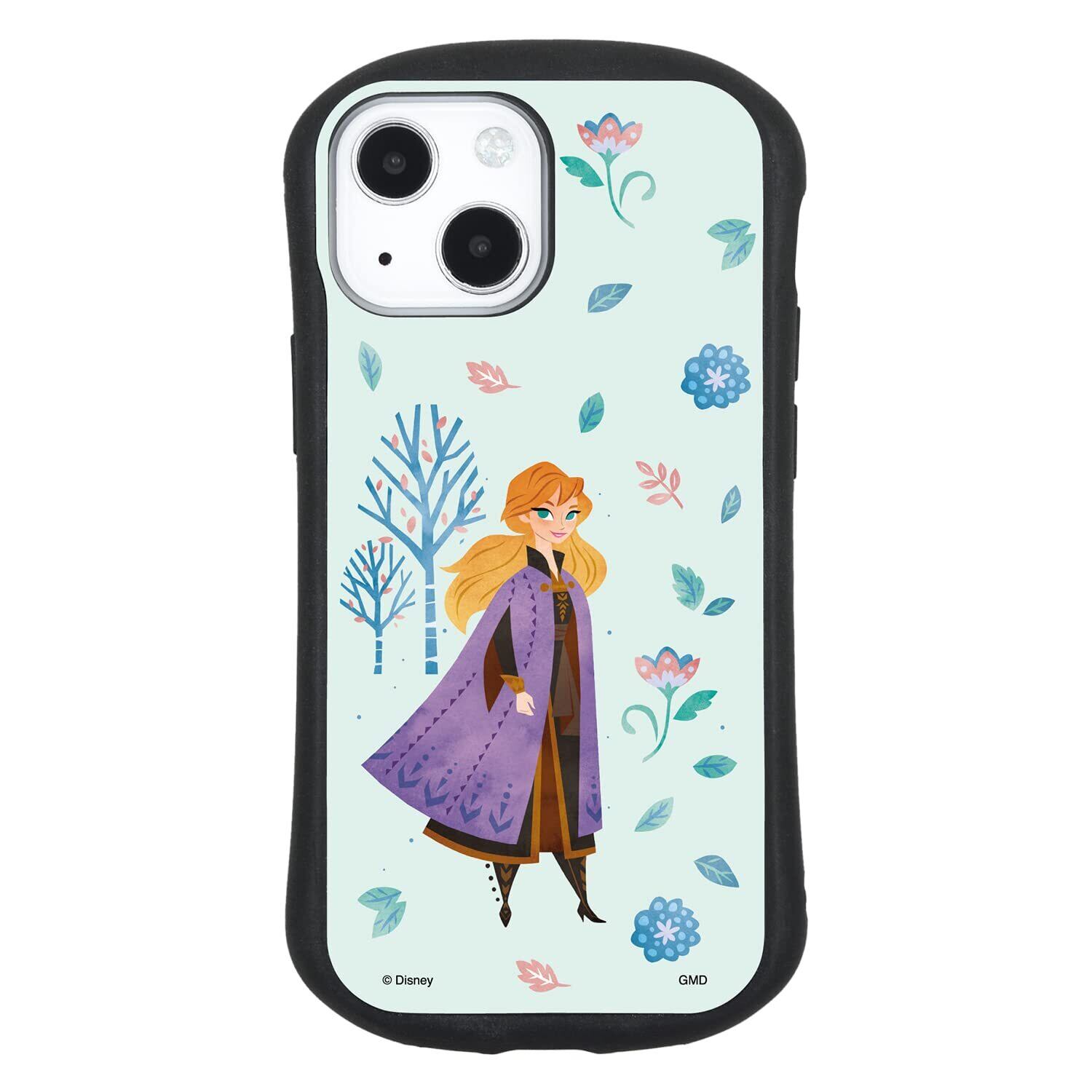 グルマンディーズ ディズニー『アナと雪の女王』/iPhone13 mini/12 mini(5.4インチ)対応 ハイブリッドガラスケース アナ DN-918B ライトブルー