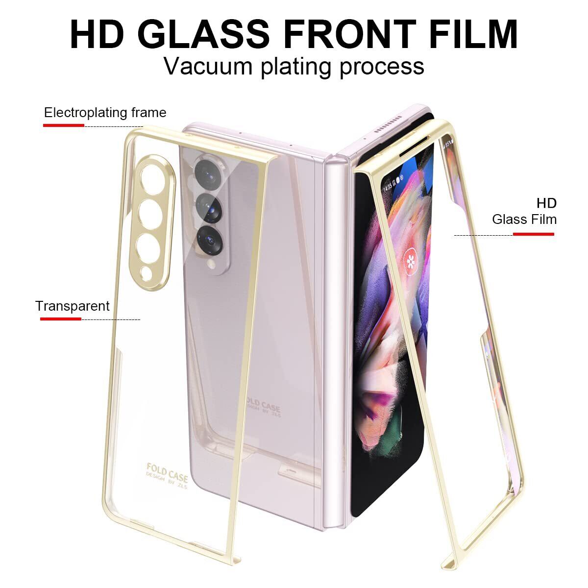 【在庫セール】全面保護ケース+強化ガラスフィルム Galaxy Z Fold3 / W223Dメッキフレーム 透明 手帳型 折り畳み ブラケット機能人気 金属レンズ保護 シリカゲル磁性クロスパターン キラキラ おしゃれ かわいい 二層構造 スタンド フリップ 取り外し ポケット 耐衝撃 QI充電 ワイヤレス 財布型カバー、面白い フリップ ハイブリッド メイクアップ - 金 | BOSSO