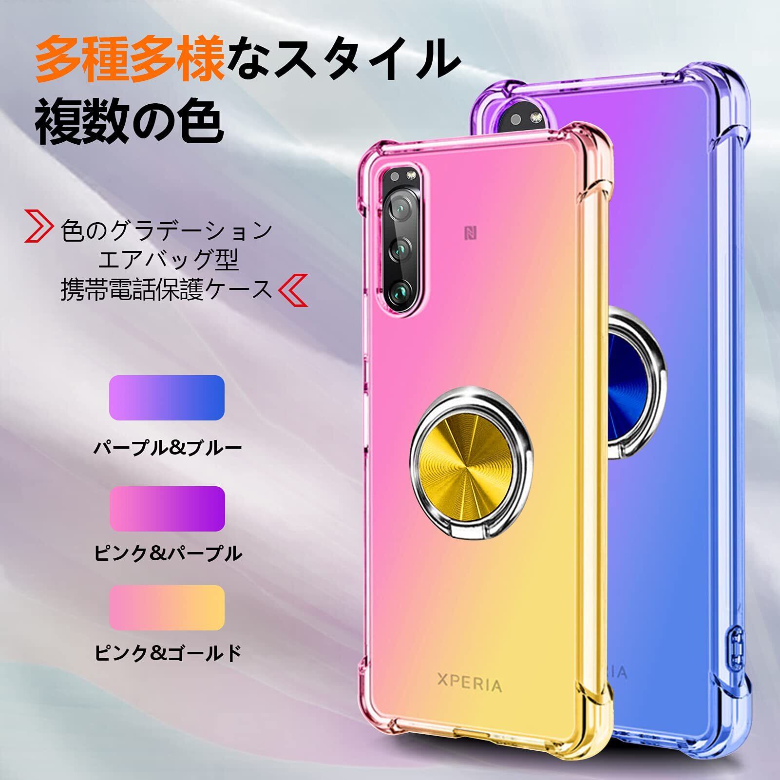 【在庫処分】Xperia XZ1 ケース リング付き クリア TPU グラデーション色 SOV36 SO-01K 携帯カバー 耐衝撃 透明 車載ホルダー対応 一体型 落下防止 防塵 変形防止 全面保護 ソニー エクスペリア XZ1 カバー ピンク/ゴールド W-CSZH-23-01 | BOSSO