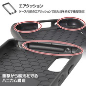 丸みを帯びた持ちやすい形状 / 手になじみ持ちやすい / 落下防止 / 落としにくい / 衝撃をやわらげる上下のエアクッション / 衝撃吸収 / 耐衝撃 耐衝撃ケース / エアクッション クッション性抜群