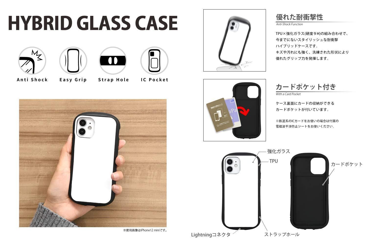 強化ガラス+TPUのハイブリッド素材による耐衝撃タイプ。キズを防ぎ、軽微な振動や衝撃から守ります。