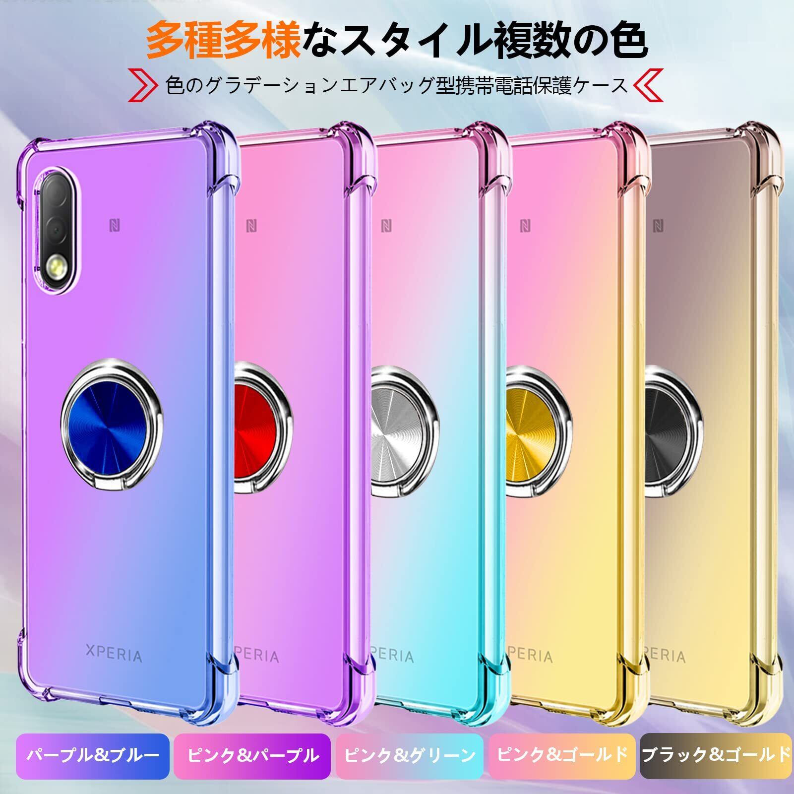 Xperia 5 ケース リング付き クリア TPU グラデーション色 SO-01M SOV41 ケース 耐衝撃 ソニー エクスペリア5カバー 透明 車載ホルダー対応 一体型 落下防止 防塵 変形防止 全面保護 ソニー カバー ピンク/緑 W-CSZH-02-06