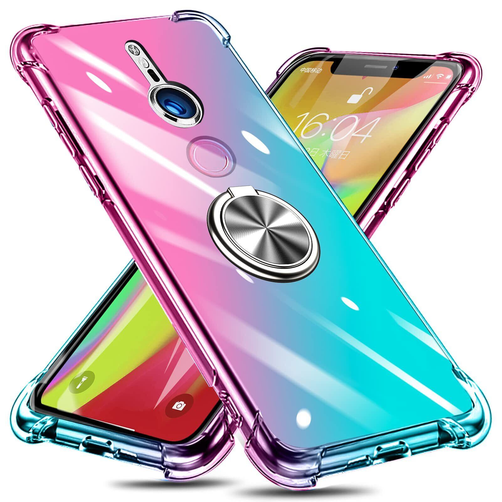 Xperia XZ3 ケース リング付き クリア TPU グラデーション色 SO-01L SOV39 ケース 耐衝撃 ソニー エクスペリアXZ3カバー 透明 車載ホルダー対応一体型 落下防止 防塵 変形防止 全面保護 ソニー カバー ピンク/緑 W-CSZH-06-09