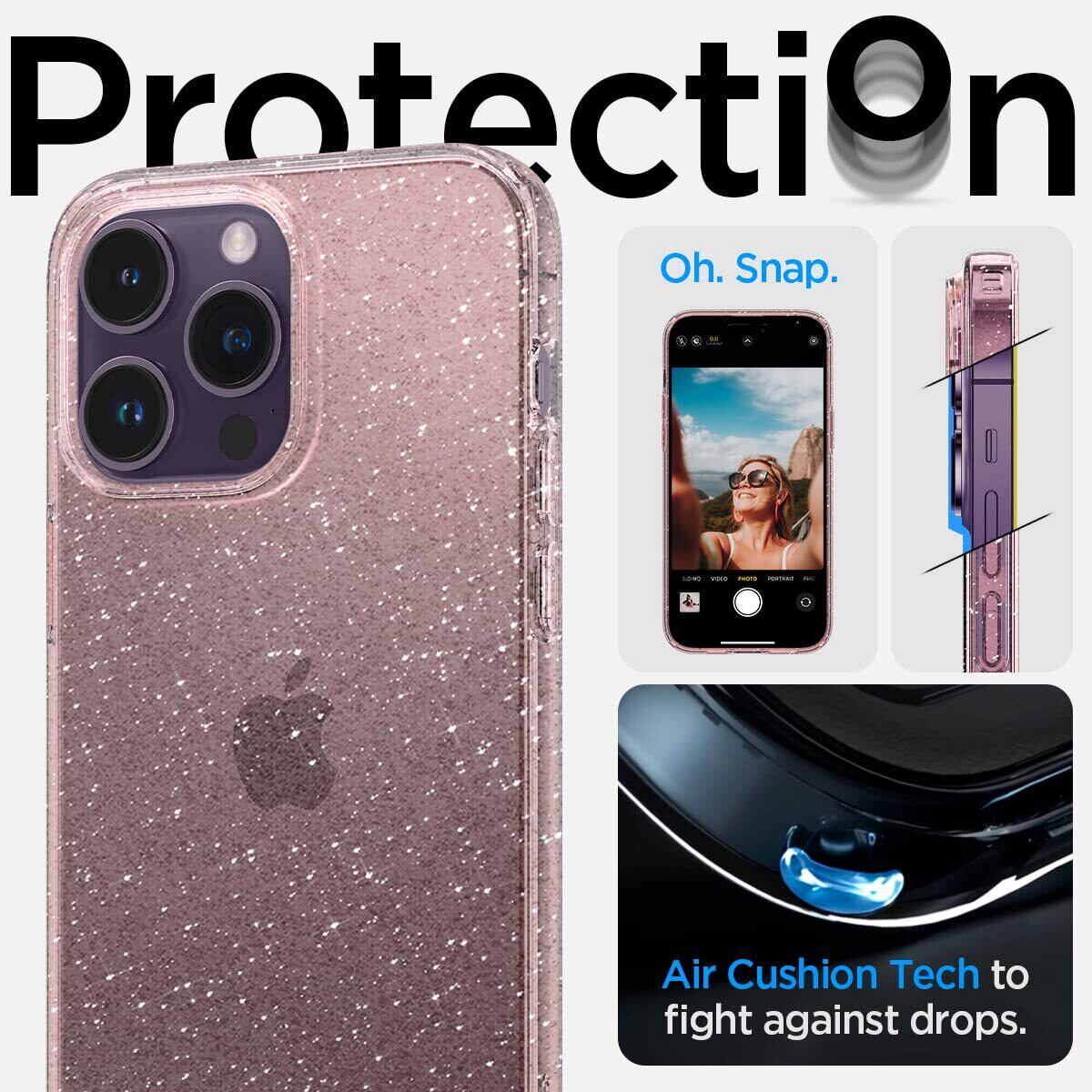 Spigen iPhone14ProMax ケース TPU ソフトケース キラキラ ラメ入り 米軍MIL規格取得 黄ばみ無し 傷防止 レンズ保護 薄型 軽量 リキッド・クリスタル グリッター ACS04811 (ローズ・クォーツ)