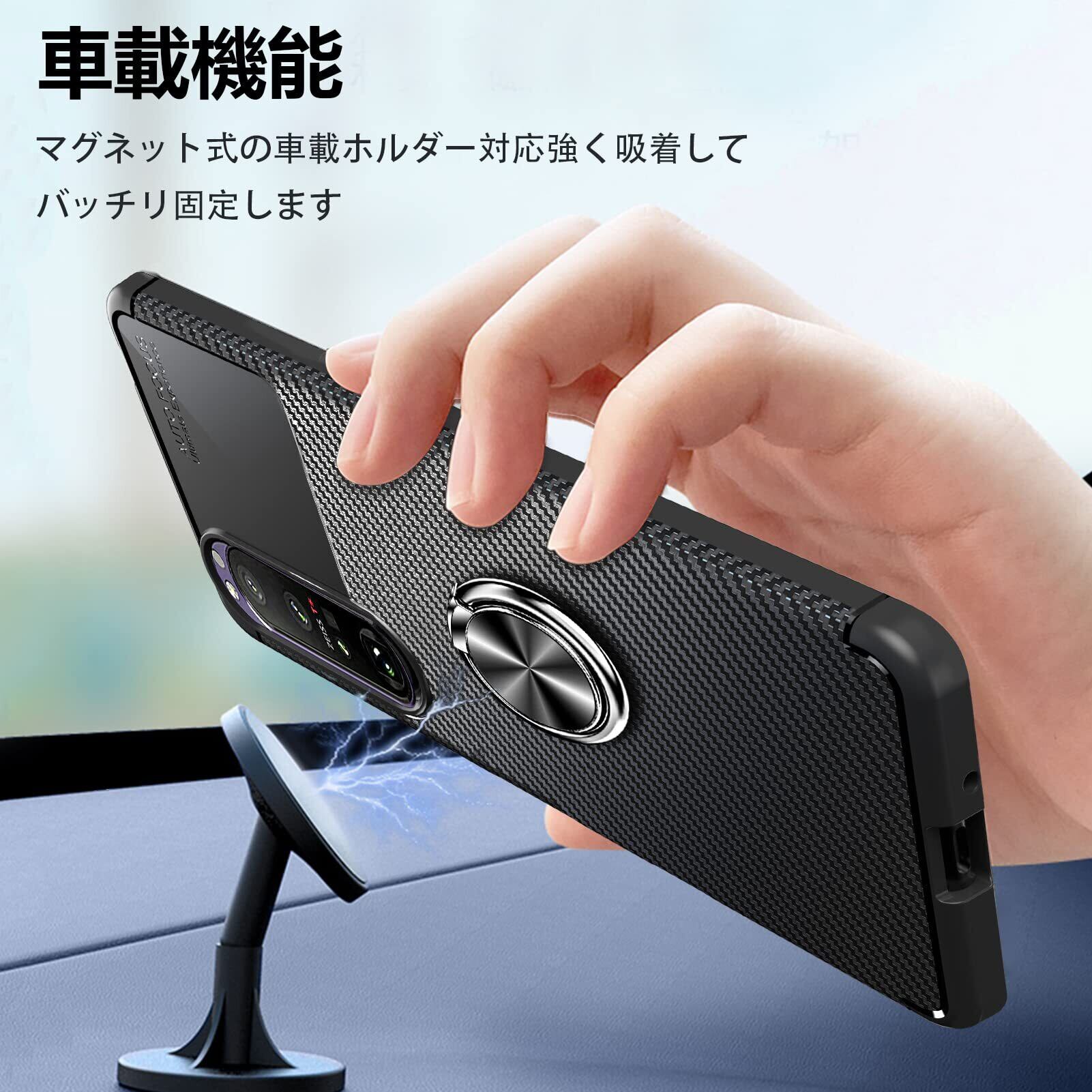 Galaxy A52 5G ケース リング付き SC-53B用 カバー 炭素繊維 TPU 耐衝撃 スタンド機能 車載ホルダー対応 落下防止 防塵 薄型 軽量 一体型 変形防止 全面保護カバー サムスン ギャラクシー A52 5G ケース 黒 W-JKC-A52-01