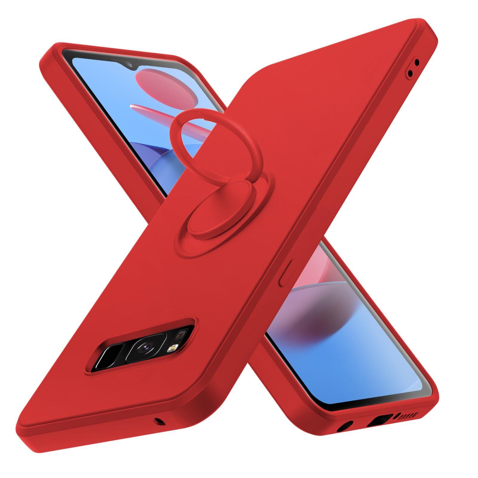 Samsung Galaxy S8 SC-02J SOV36 ケース 耐衝撃リング付き シリコン 薄型 カバー スリム tpu 磨り表面 指紋防止カバー 柔らかい裏地 米軍MIL規格 黄ばみなし レンズ保護 滑り止め 柔軟性 擦り傷防止 赤 N413-As8-02