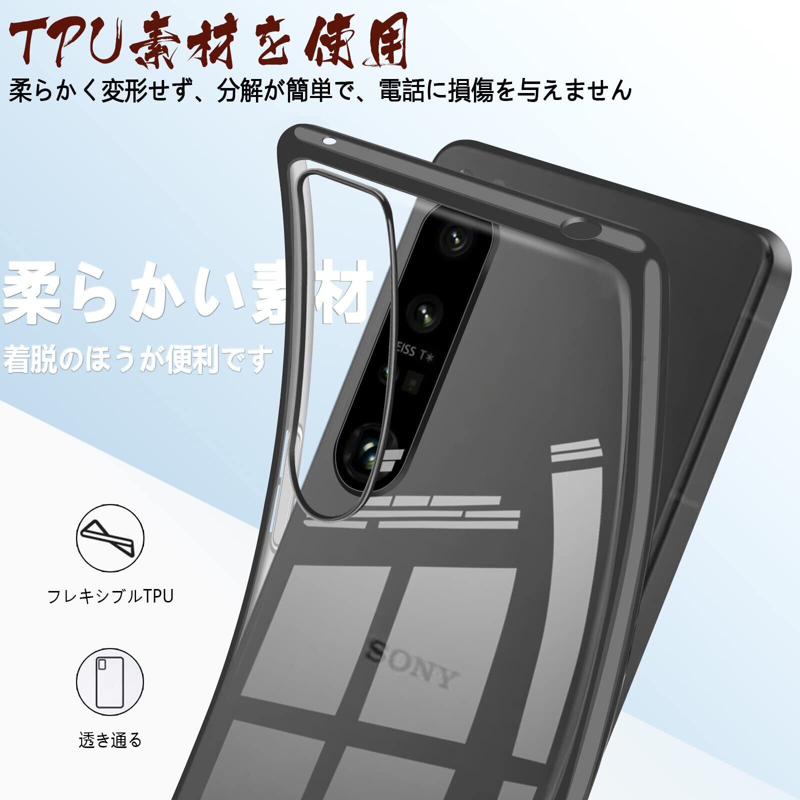 Xperia 1 IV ケース クリア tpu SO-51C SOG06 スマホケース 透明 ソフト 薄型 エスクペリア 1IV 背面クリア 黒 スリム ストラップホール付き 軽 耐衝撃 カバー ブラック