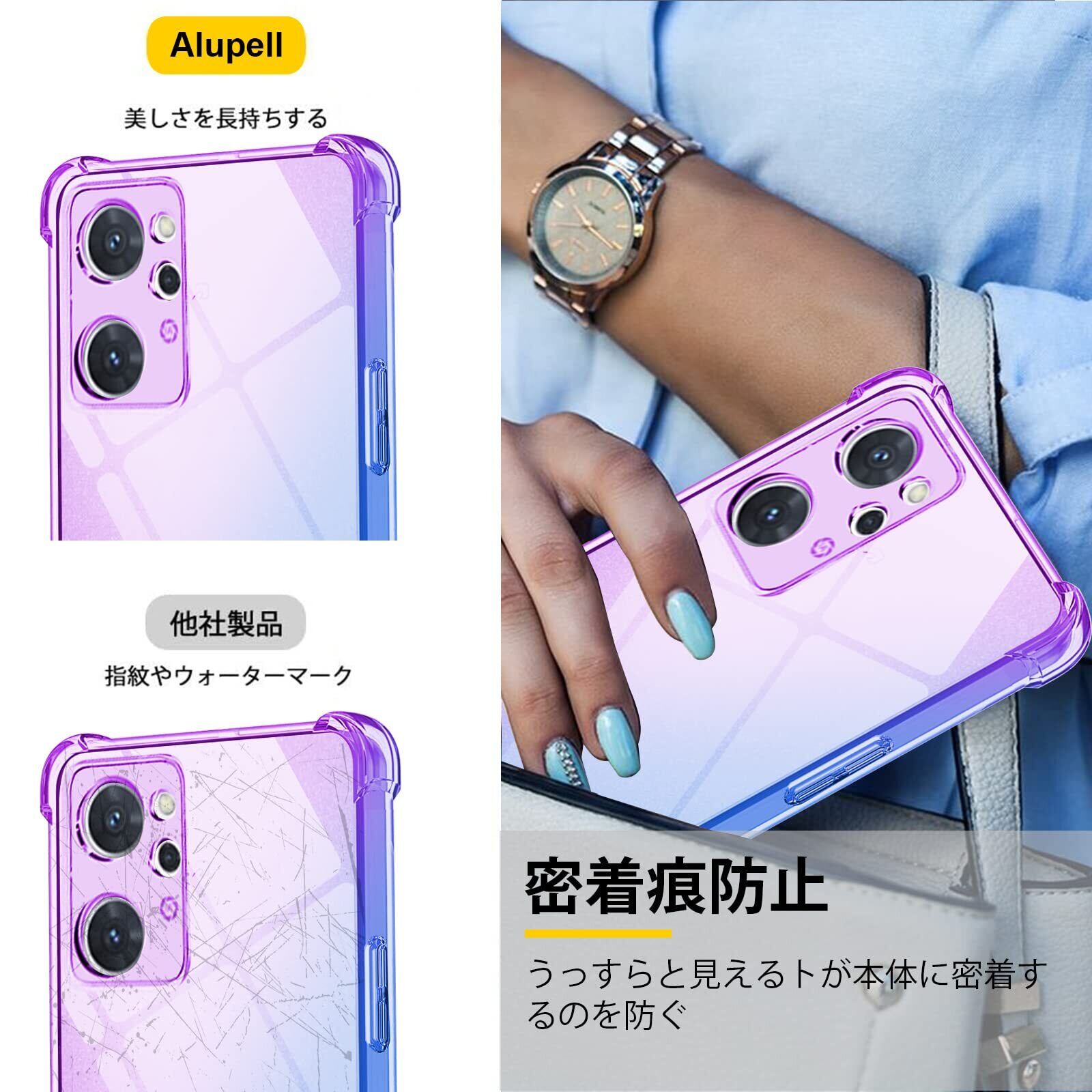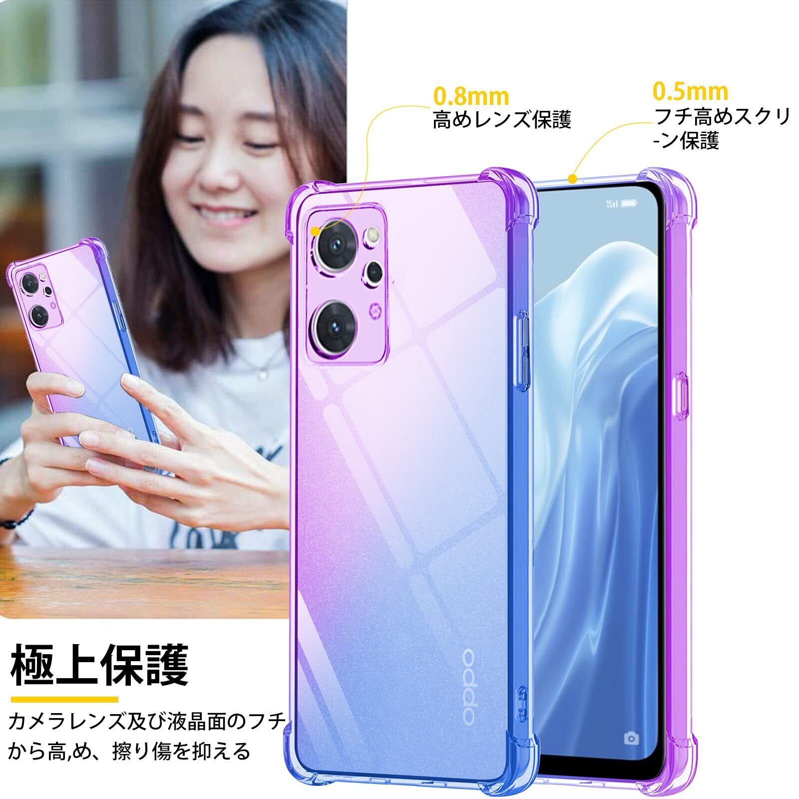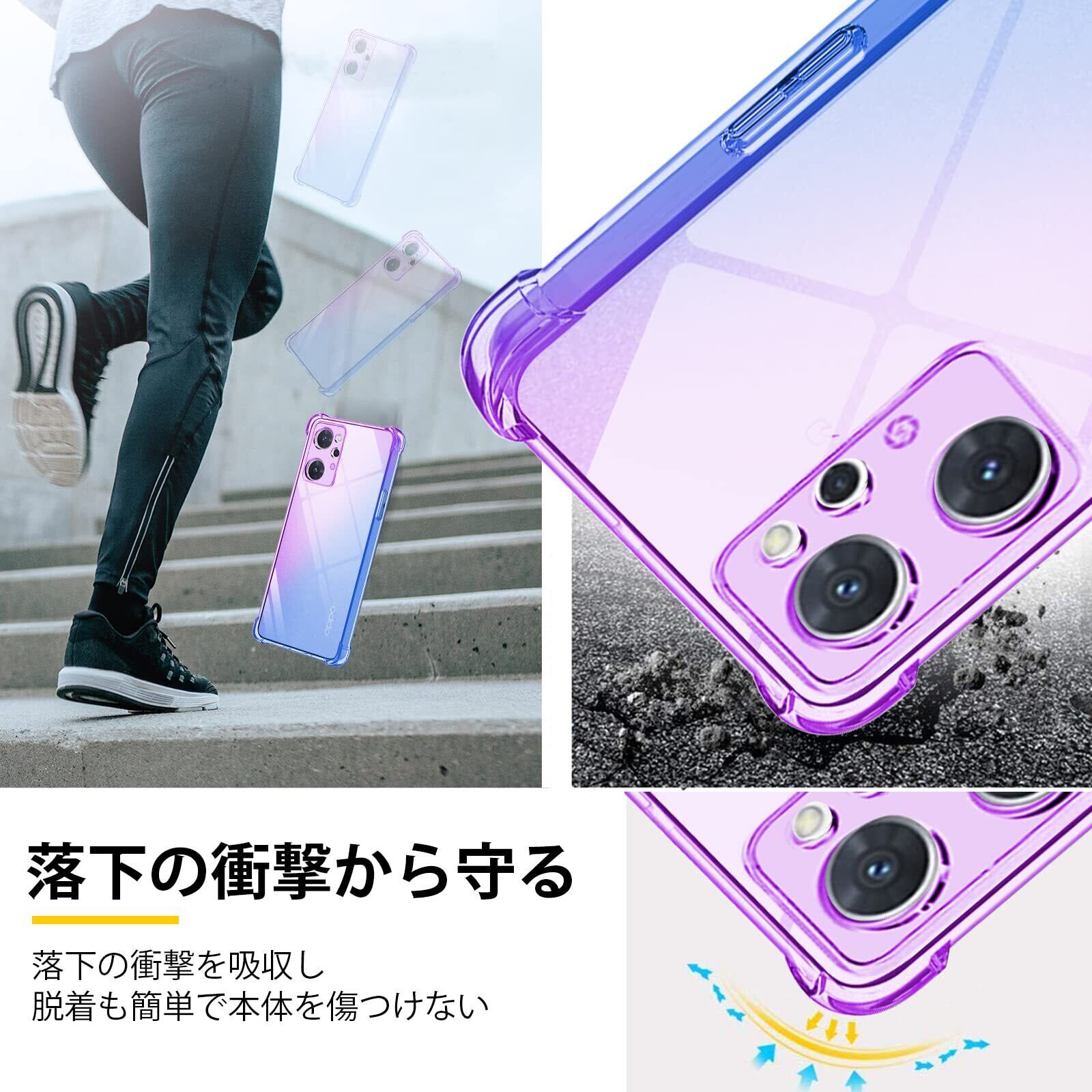 OPPO Reno7 A ケース OPPO Reno9 A ケース TPU クリア 薄型 軽量シリコン グラデーション色 ケース 耐衝撃 米軍MIL規格取得 黄変防止 防塵 一体型 人気 携帯カバー (パープルブルー)
