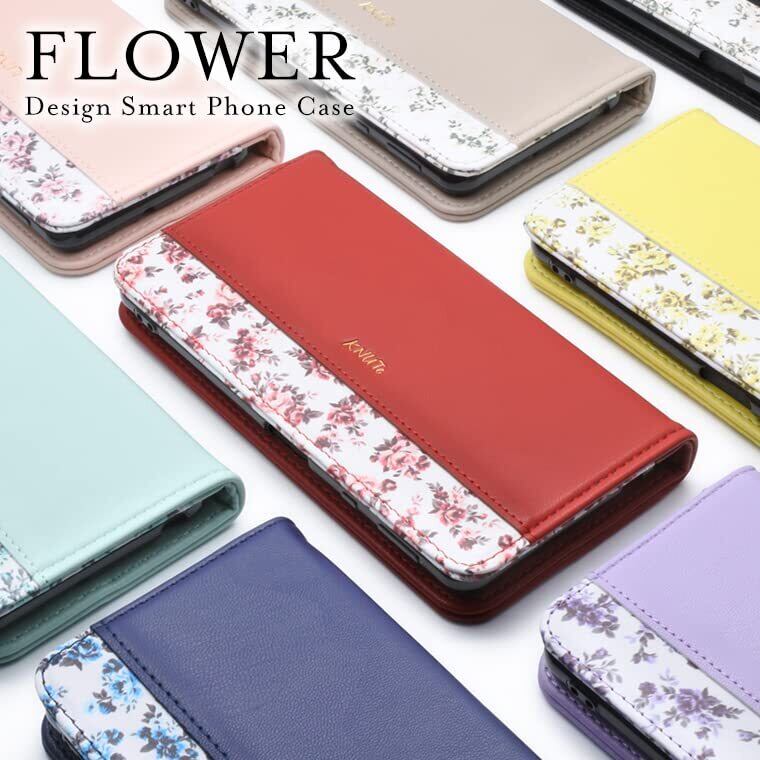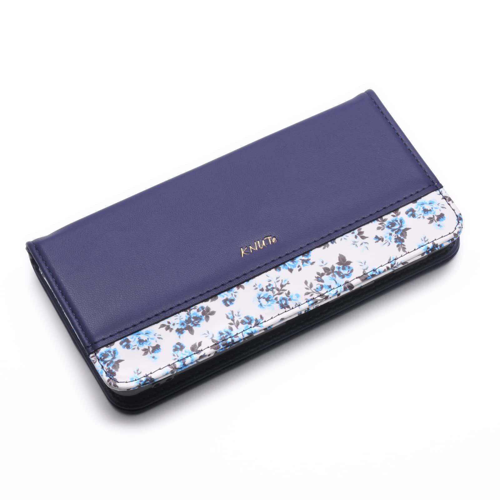 【在庫処分】KNUTe スマホケース iPhoneSE第3世代(SE3)用/第2世代(SE2)用/iPhone8用/iPhone7用 花柄 手帳型 ケース カバー ベルト無し フタぴた 蓋ピタ マグネット式 スタンド ストラップホール フラワー マグネット (ネイビー) | BOSSO