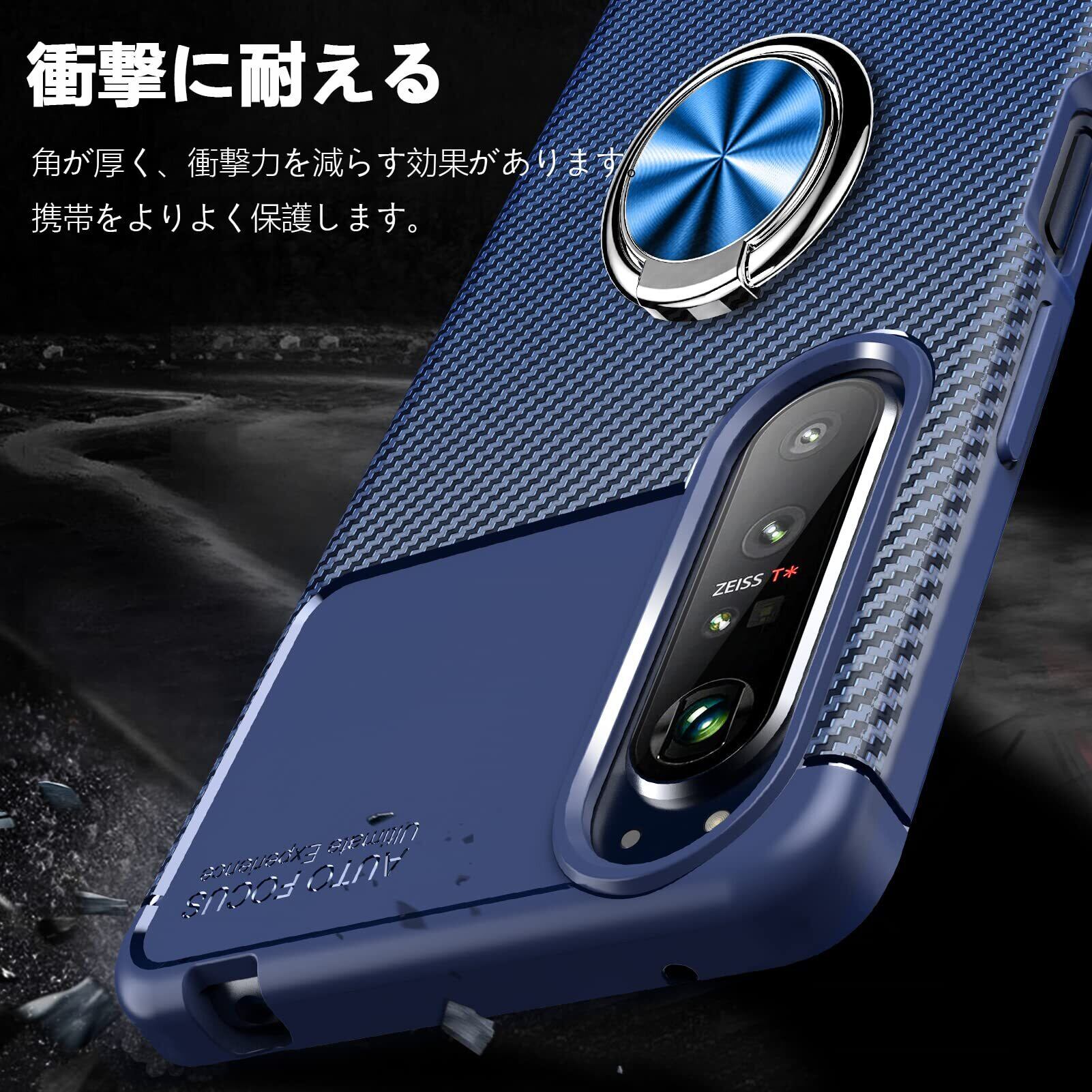 Galaxy S22 ケース リング付き SCG13 SC-51C 用 カバー 炭素繊維 TPU 耐衝撃 スタンド機能 車載ホルダー対応 落下防止 防塵 薄型 軽量 一体型 変形防止 全面保護カバー サムスン ギャラクシー S22 ケース 青 W-JKC-S22-02