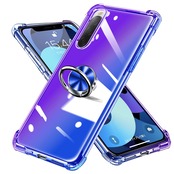 【在庫セール】Xperia 10 III ケース Xperia 10 III lite ケース リング XQ-BT44 SOG04 SO-52B カバー クリア グラデーション色 TPU ソフト エクスペリア 10 III ケース 耐衝撃 黄変防止 スリム スタンド機能 スマホケース 車載ホルダー対応 ソニー 携帯カバー 紫/ブルー HB-CSZH-14-03 | BOSSO