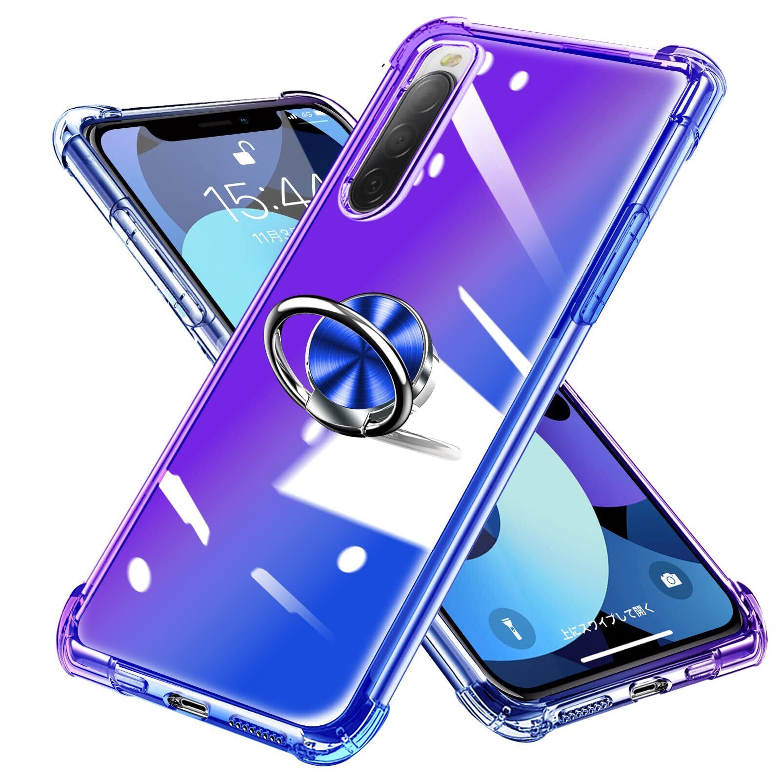 Xperia 10 III ケース Xperia 10 III lite ケース リング XQ-BT44 SOG04 SO-52B カバー クリア グラデーション色 TPU ソフト エクスペリア 10 III ケース 耐衝撃 黄変防止 スリム スタンド機能 スマホケース 車載ホルダー対応 ソニー 携帯カバー 紫/ブルー HB-CSZH-14-03