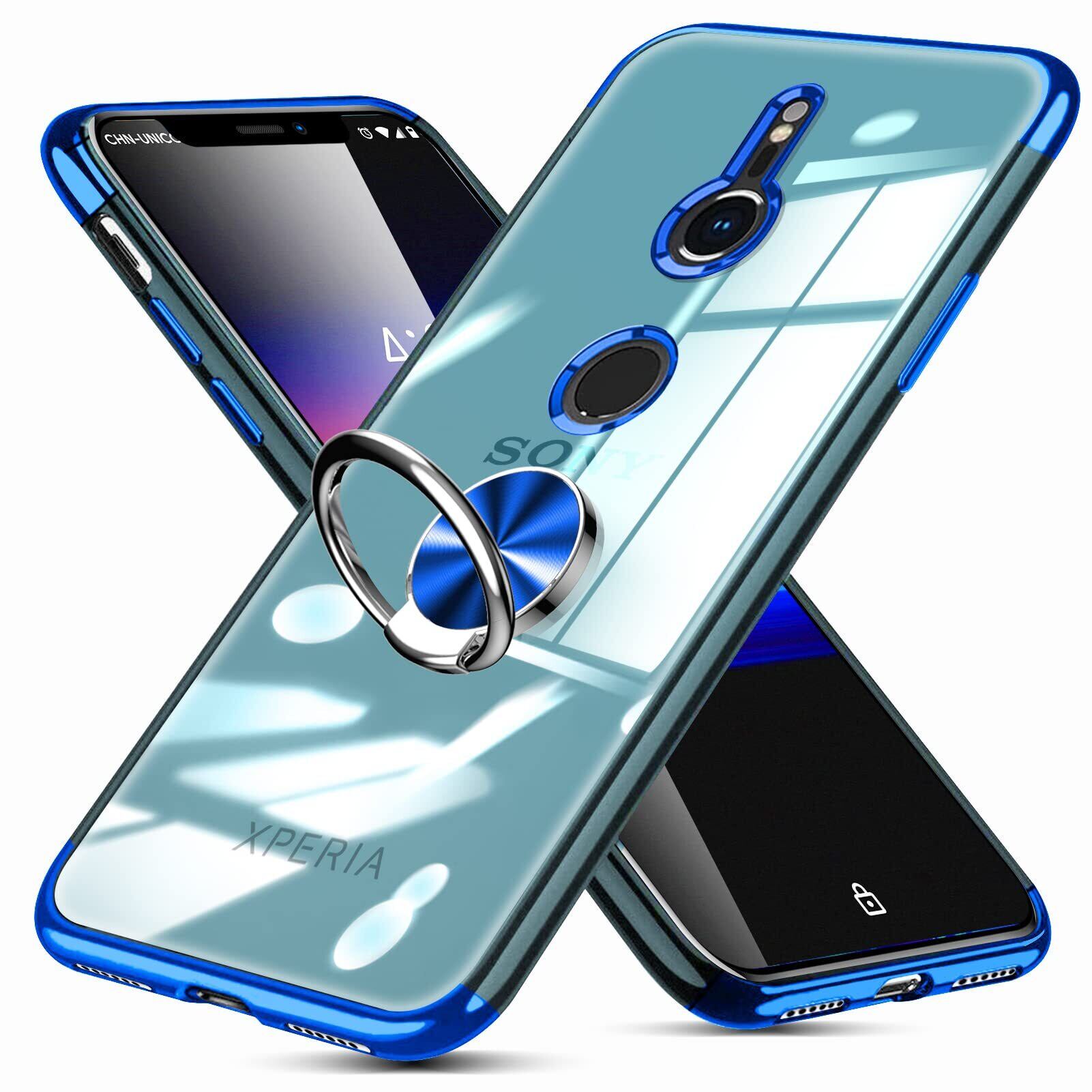 Xperia XZ3 ケース リング付き クリア SO-01M SOV41 ケース TPU 透明 メッキ加工 耐衝撃 車載ホルダー対応 スタンド機能 防塵 薄型 軽量 落下防止 一体型 変形防止 ソニー エクスペリア XZ3 カバー 青 MJJ-1055-14-03