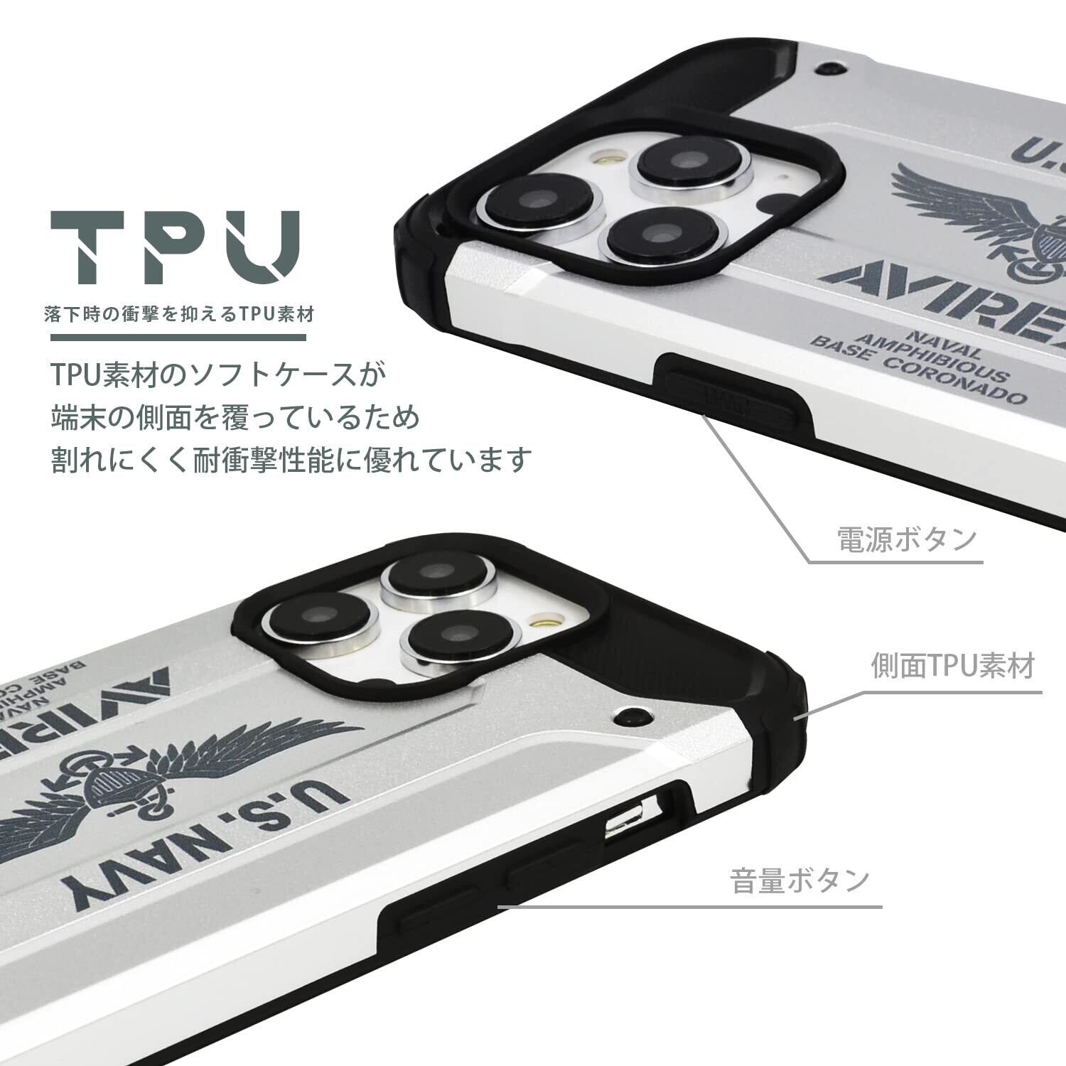 【 AVIREX 正規品 】 iPhone14 Pro ケース 耐衝撃 「 アーミータフ 」 アヴィレックス ブランド 背面 アイフォン14プロ 6.1インチスマホケース (シルバー iPhone 14 Pro)