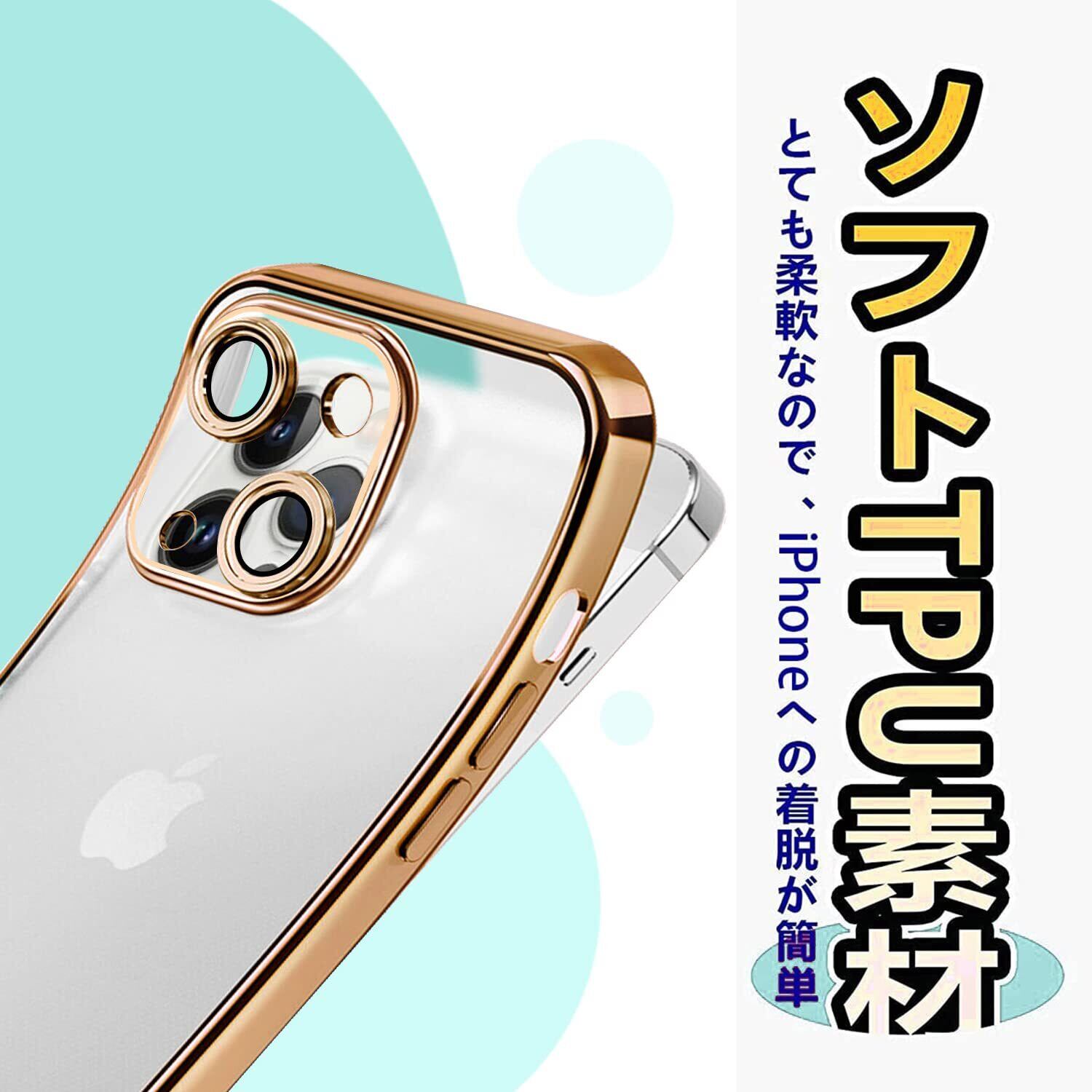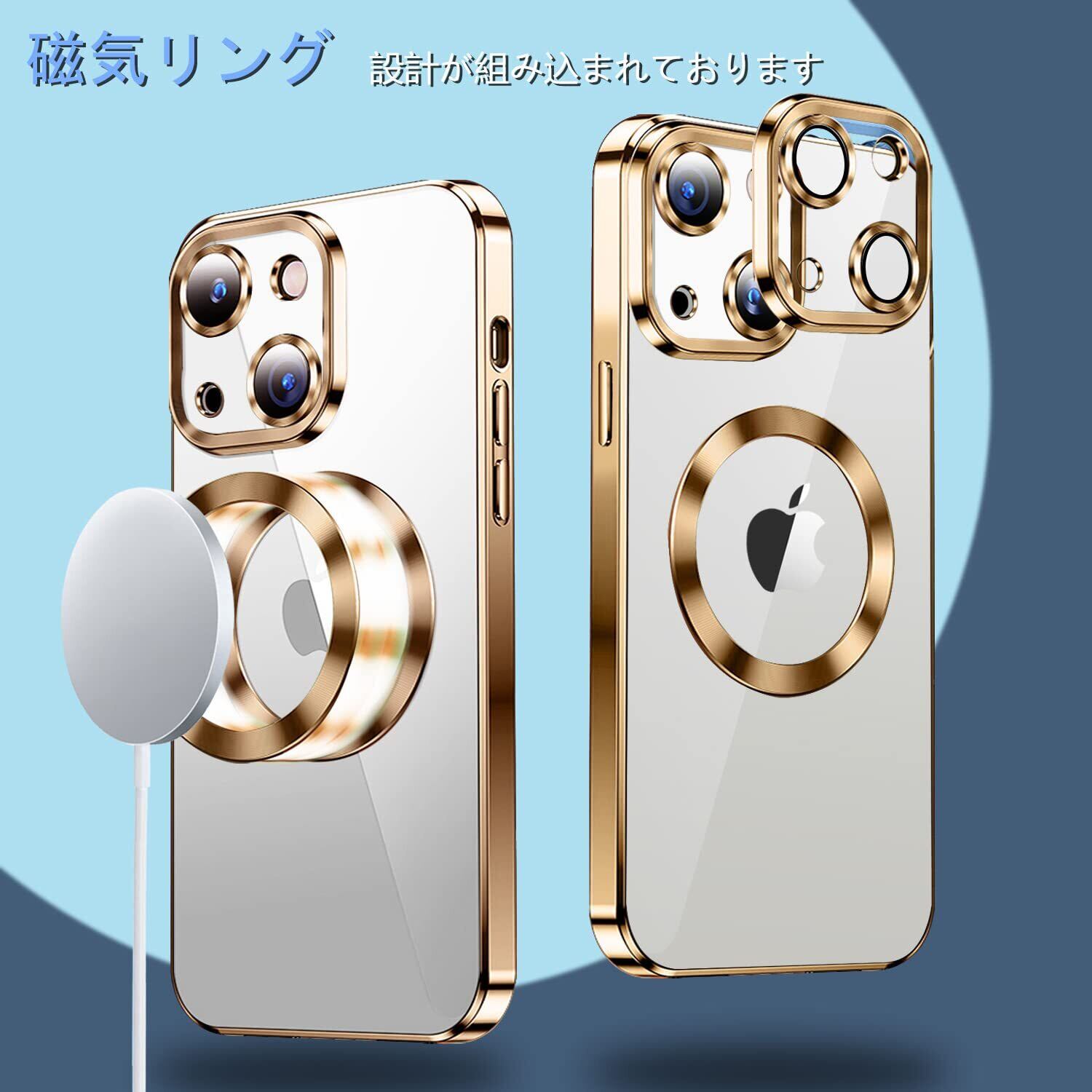 iPhone 14 Plus 用 ケース クリア iPhone 14plus 用 カバー 透明 スマホケース レンズ保護 tpu 薄型 スリム 耐衝撃 マグネットリング付き 磁気ワイヤレス充電対応 ストラップホール付き ソフトケース 可愛い アイフォン14 プラス ケース(ゴールド)