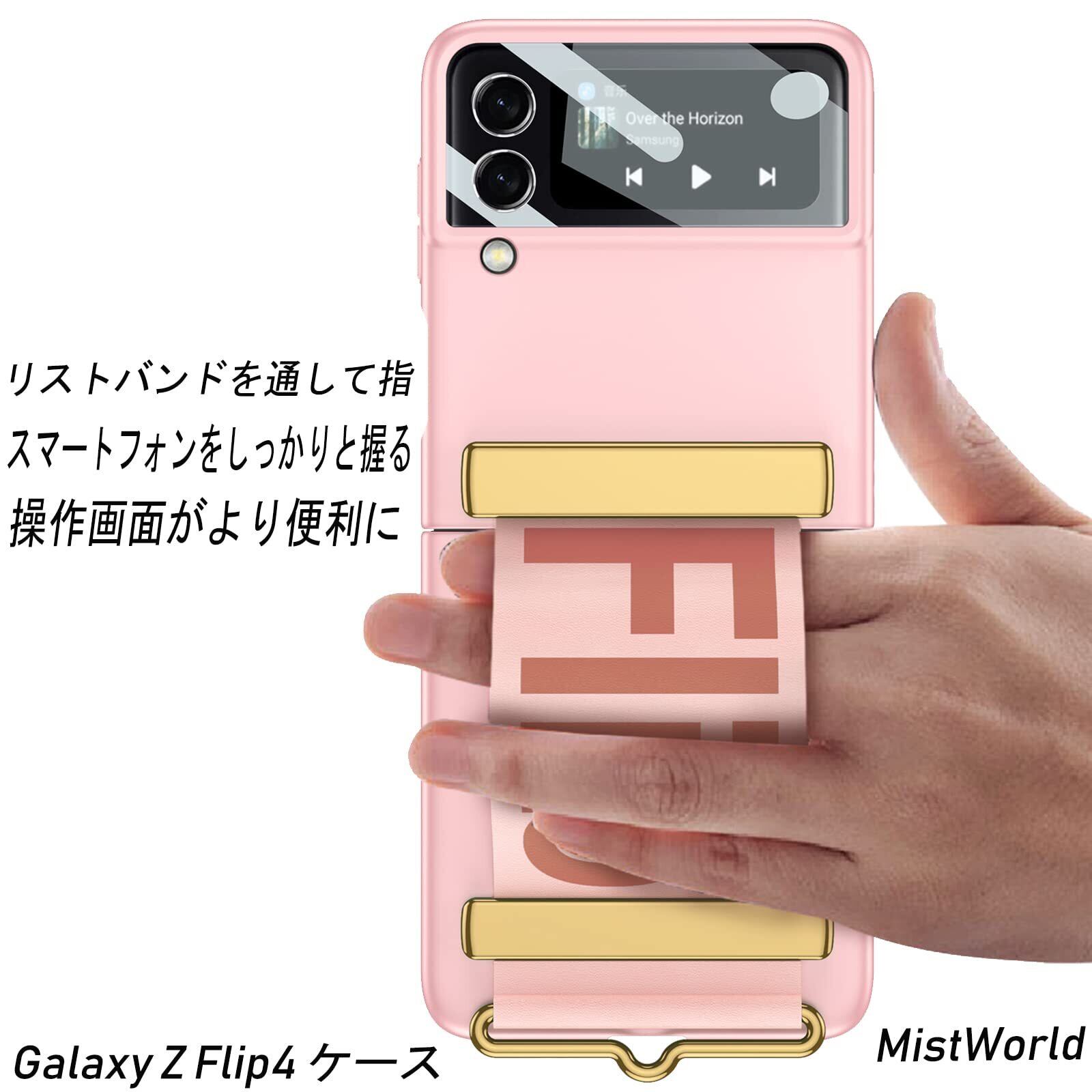 MistWorld Galaxy Z Flip4 リストバンドケース 該当するSamsung Galaxy Z Flip4 5G 2022 スリムケース キックスタンド付き ヒンジ付きカバーケース 小さなスクリーンプロテクター付き-ピンク