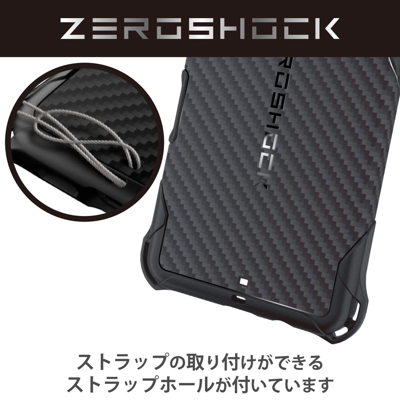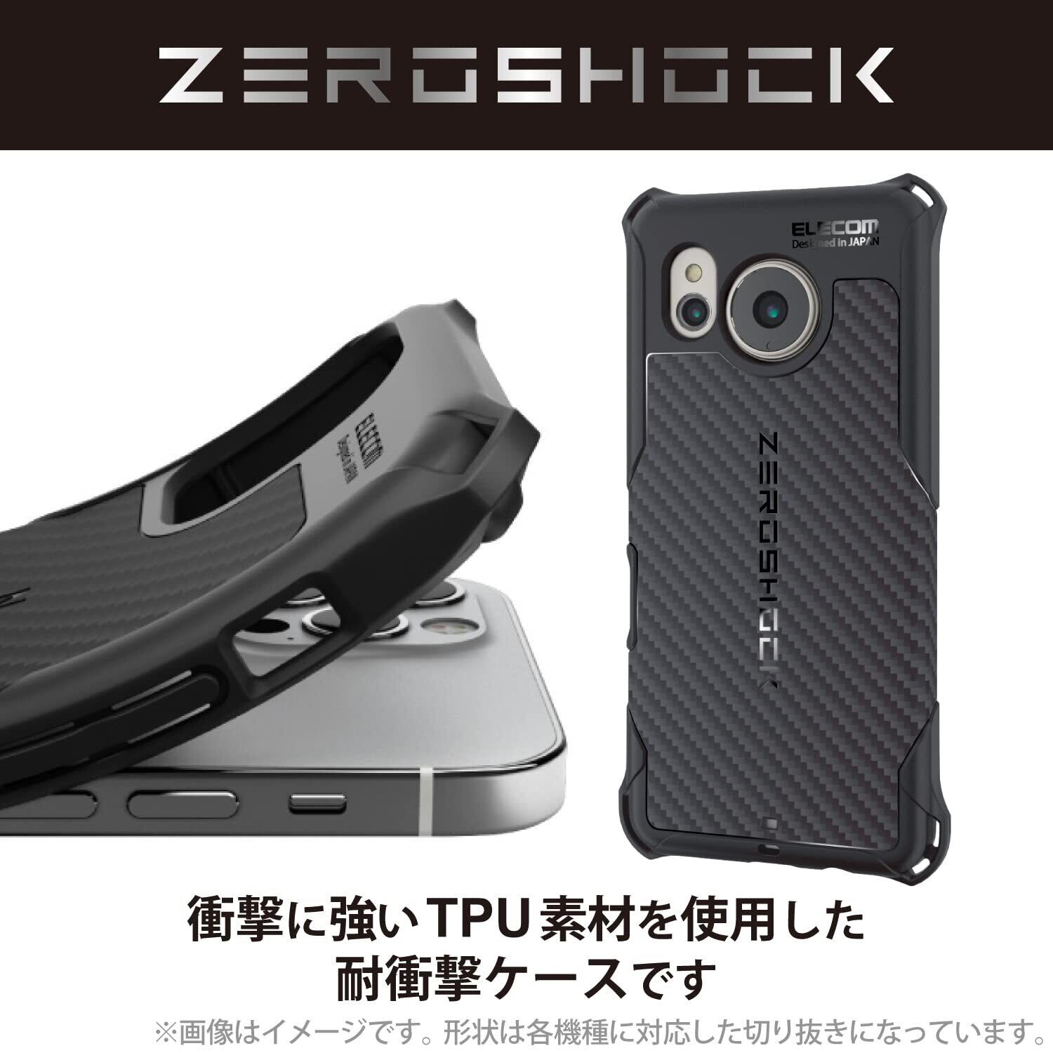 エレコム AQUOS sense7 [ SH-53C | SHG10 ] ケース カバー 耐衝撃 衝撃吸収 ZEROSHOCK TPU ソフト 四つ角ダンパー ハニカム構造 握りやすいカーボン調テクスチャー ストラップホール付き ブラック PMWS226ZEROGBK