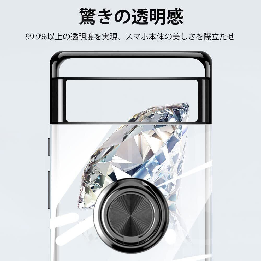 Google Pixel 7 ケース クリア リング付き 耐衝撃 TPU Google Pixel7 ケース ピクセル 7 スマホケース 透明 ソフト 軽量 薄型 カバー スタンド機能 車載ホルダー対応 ストラップホール付き(ブラック)