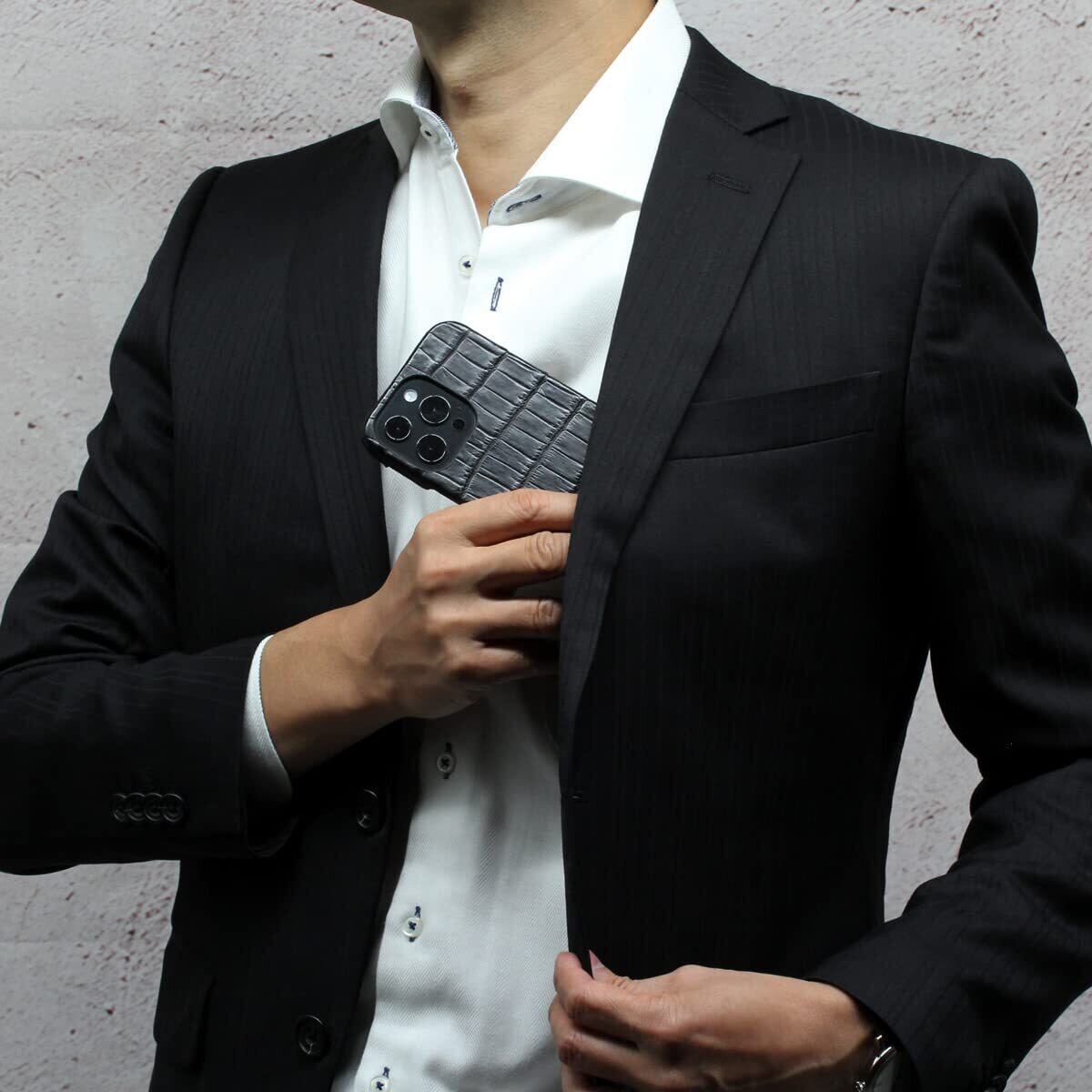 皮革の宝石と称される高級なクロコダイルの革を熟練した職人が時間をかけて製作したiPhone14 Pro用ケースになります。