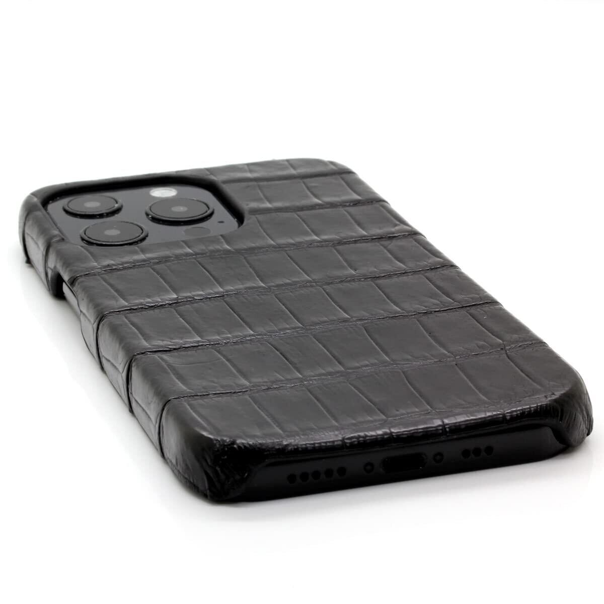 iPhone14Pro 用 ケース クロコダイル ワニ革 スマホケース スマホカバー iPhoneケース レザーケース ブラック 黒 ワイヤレス充電対応 革 ハードケース [201cri14p]