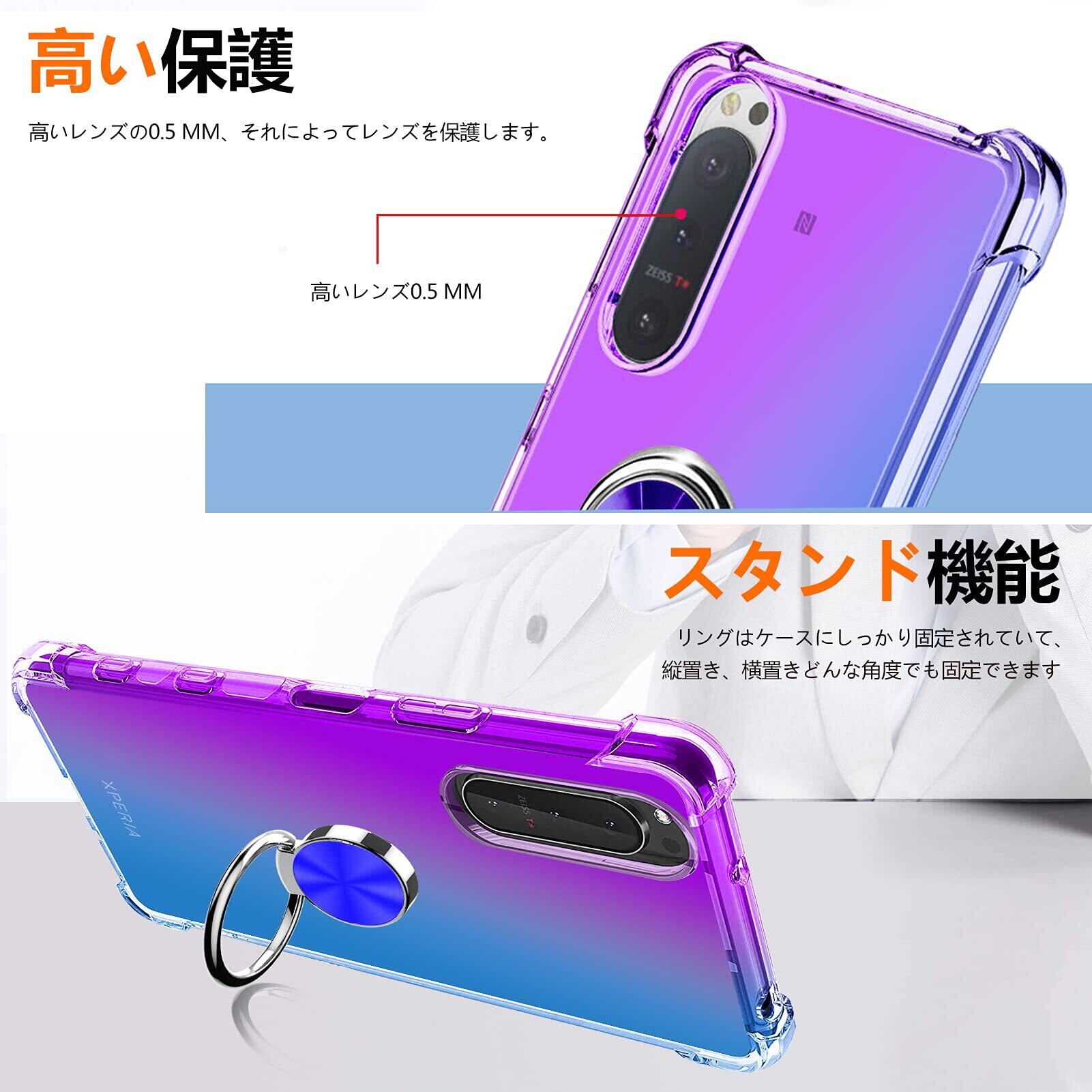 【人気商品】Xperia 1 ケース リング付き クリア TPU グラデーション色 SO-03L SOV40 ケース 耐衝撃 ソニー エクスペリア1 カバー 透明 車載ホルダー対応 一体型 落下防止 防塵 変形防止 全面保護 ソニー カバー 黒/ゴールド W-CSZH-07-08 | BOSSO
