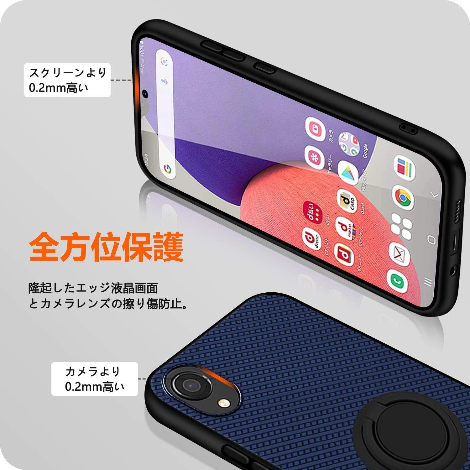 Galaxy A22 5G ケース リング付き TPU 薄型 軽量 耐衝撃 米軍MIL規格取得 SC-56B カバー 傷防止 滑り止め 指紋防止 衝撃吸収 レンズ保護 一体型 スタンド機能付き 360回転車載ホルダー ギャラクシー A22 專用 スマホケース