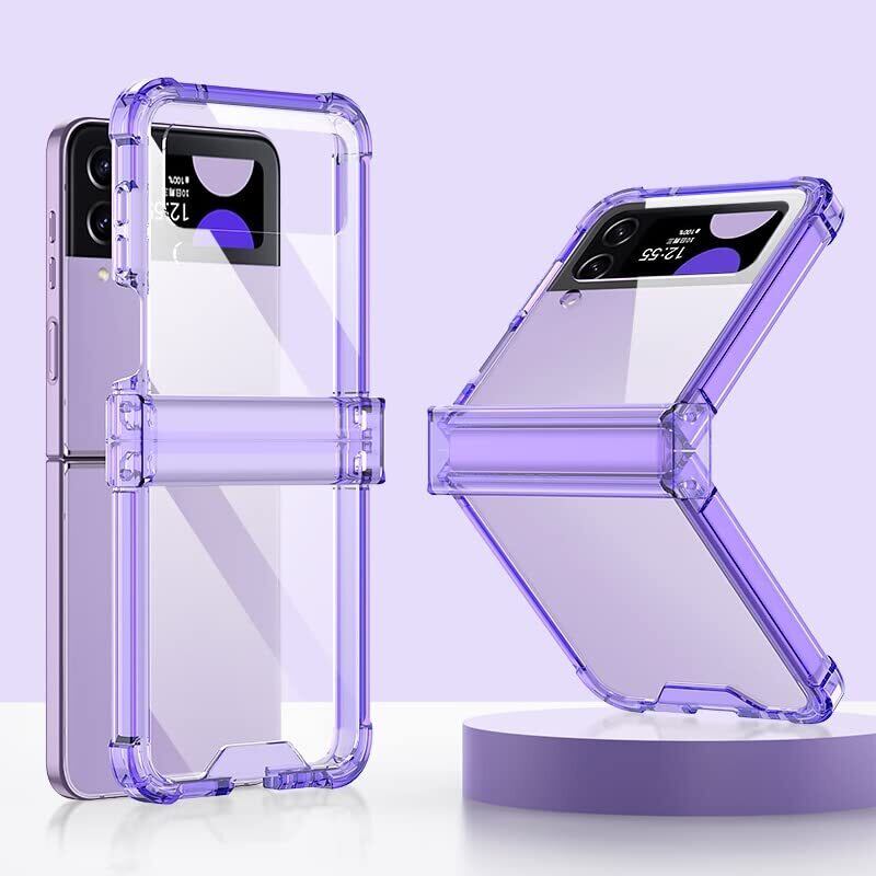 ケース Galaxy Z Flip4手帳型 折り畳み 薄型 エアバッグワイヤレス充電 透明 超軽量人気 プラスチック かわいい 、おしゃれ キラキラ スタンド つや消しの表面 カード フリップ 財布型カバー、面白い 取り外し 耐衝撃 ストラップ ポケット ハイブリッド メイクアップ、耐汚れ 滑り防止 反塵、by beautycatcher - 紫