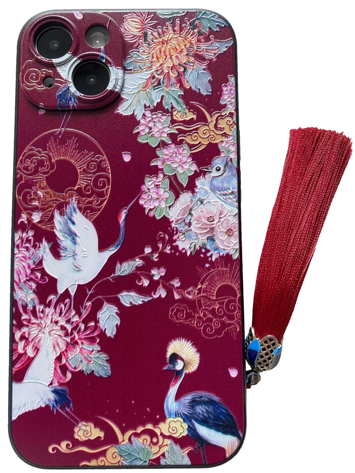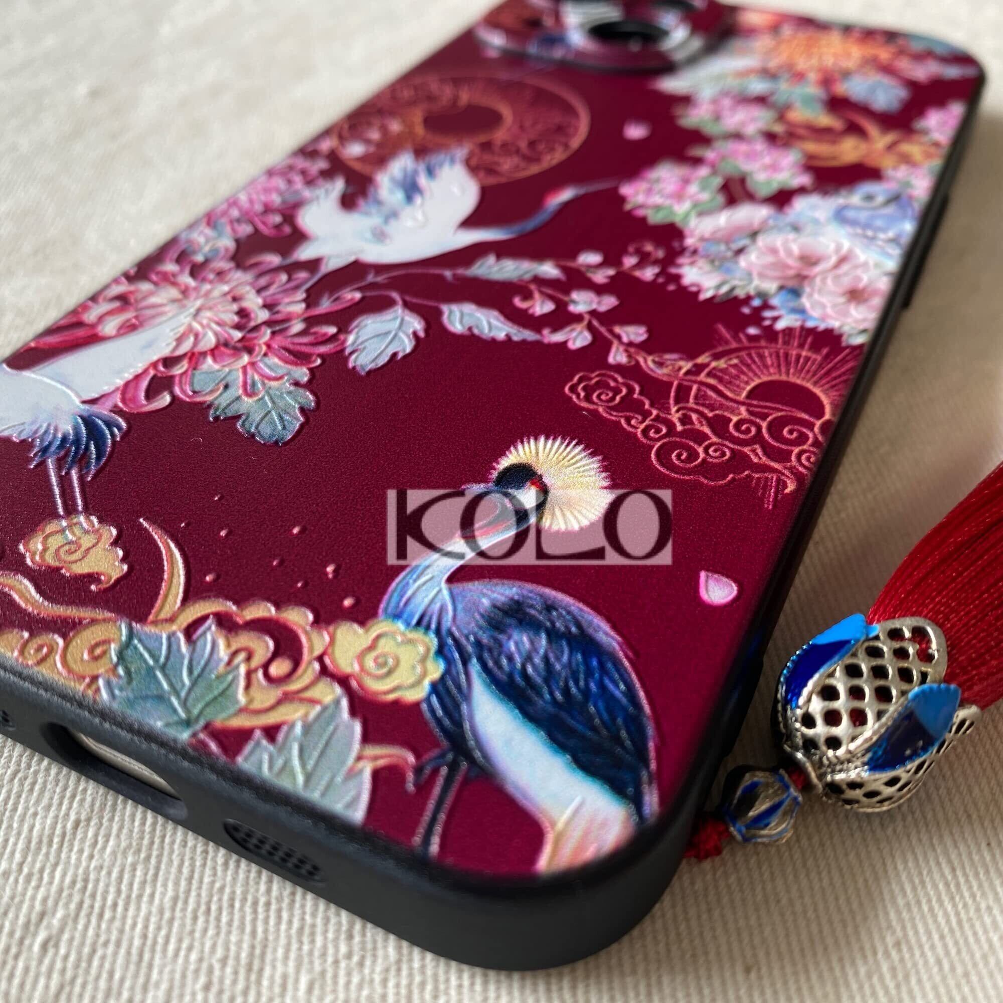 KOLO【鶴 花】 iPhone14 ケース iPhoneケース iPhone14ケース 菊 中国風のスマホケース スマホカバー(えんじ iPhone 14