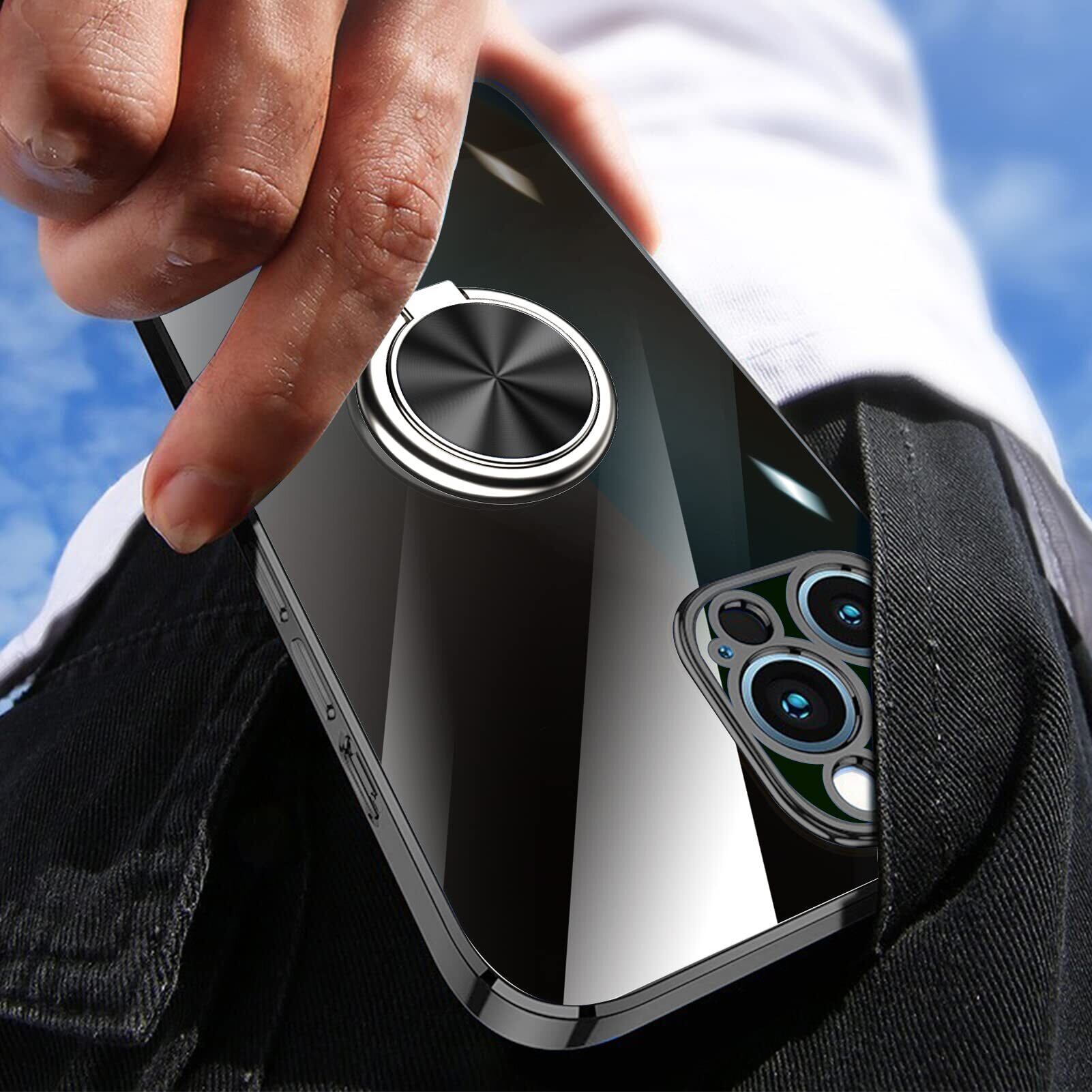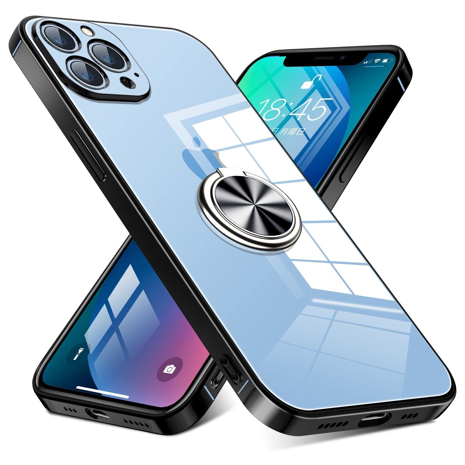 iPhone 13 Pro Max 用 ケース リング付き クリア 耐衝撃 スタンド機能 透明 TPU 車載ホルダー対応 落下防止 防塵 薄型 軽量 一体型 変形防止 全面保護カバー アイフォン 13 Pro Max 用 ケース 黒 W-YXZH-035-08