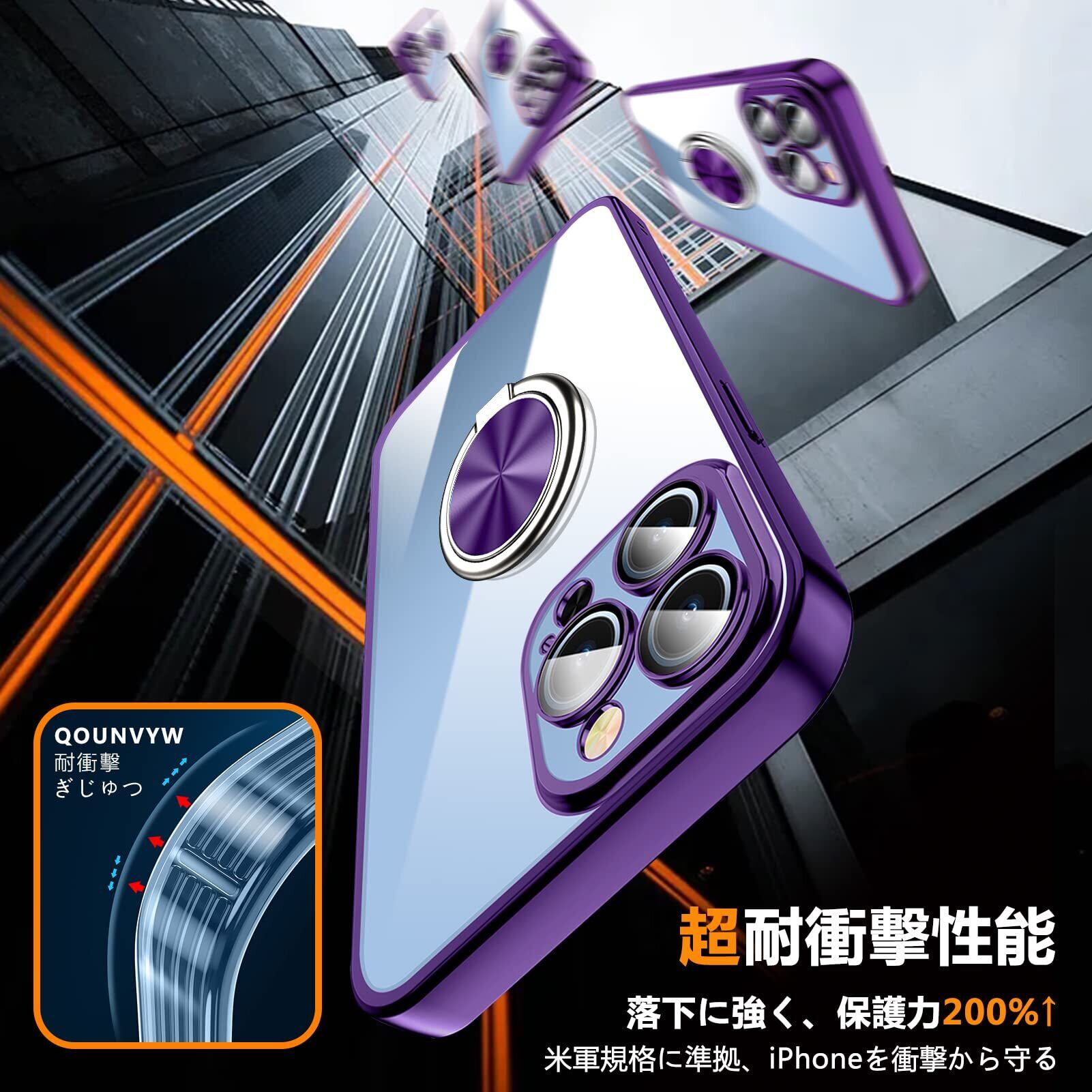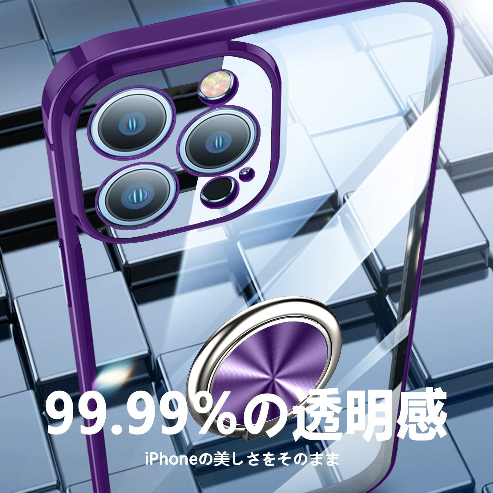 iPhone 13 Mini 用 ケース リング付き クリア 耐衝撃 スタンド機能 透明 TPU 車載ホルダー対応 落下防止 防塵 薄型 軽量 一体型 変形防止 全面保護カバー アイフォン 13 Mini 用 ケース 紫 W-YXZH-032-08