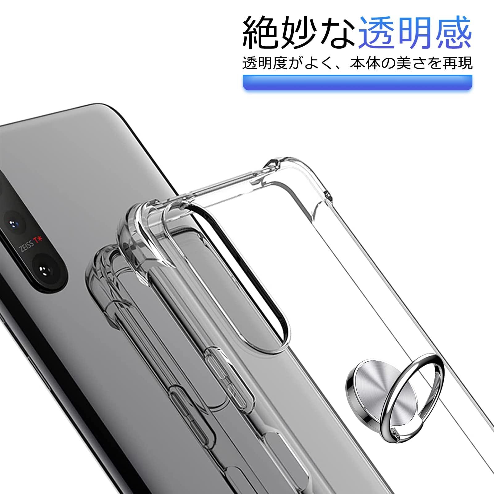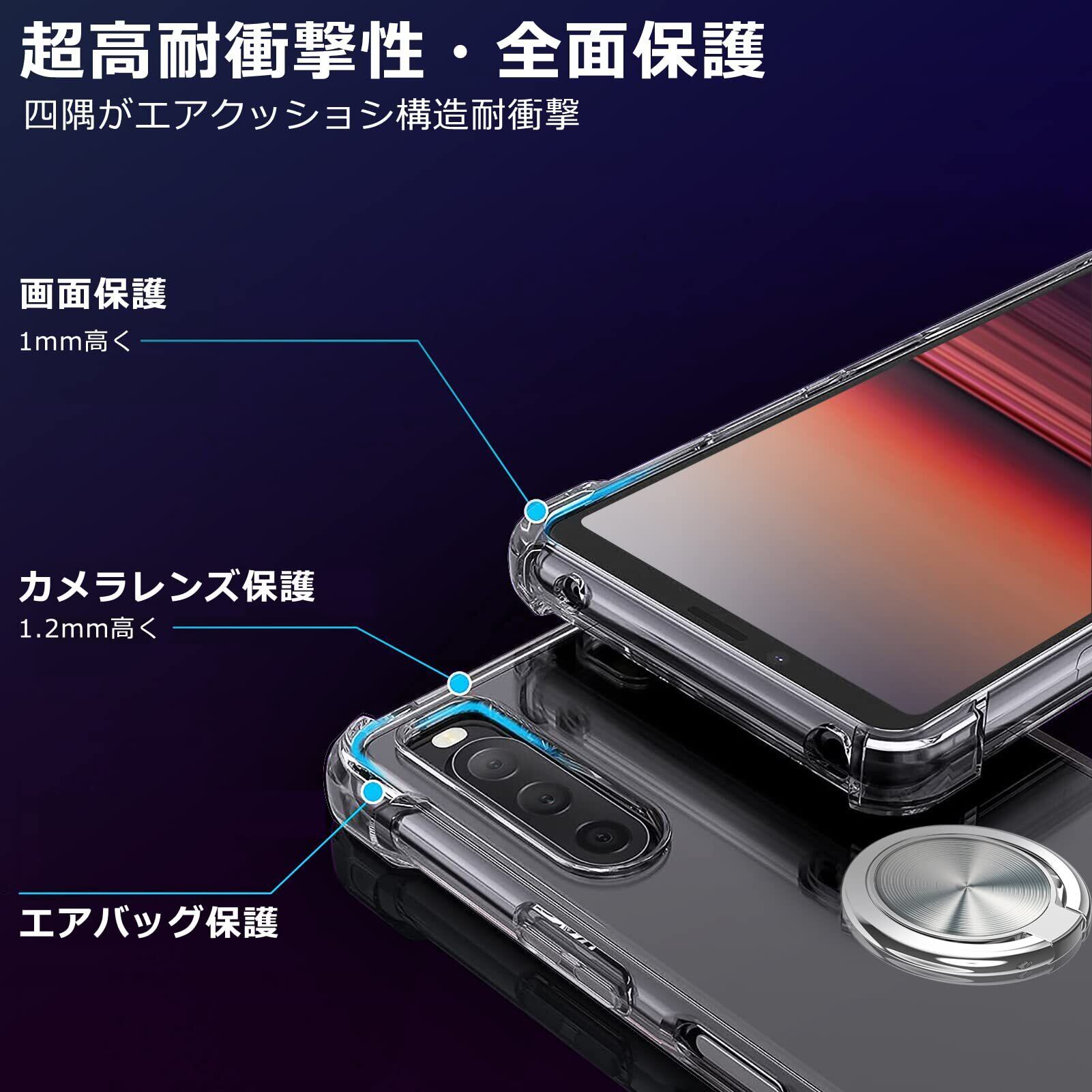 AQUOS sense7 ケース リング付き クリア TPU 対応 SH-53C / SHG10 カバー 透明 薄型 リング 回転リング 車載ホルダー対応 ケース 黄変防止 耐衝撃 滑り止め 指紋防止 カメラ保護 TPU カバー 透明 N408-sense7-01