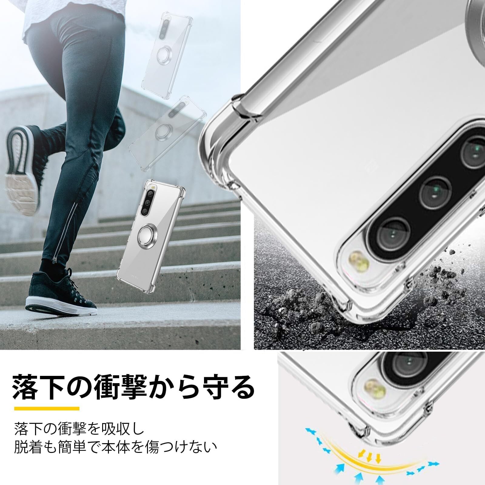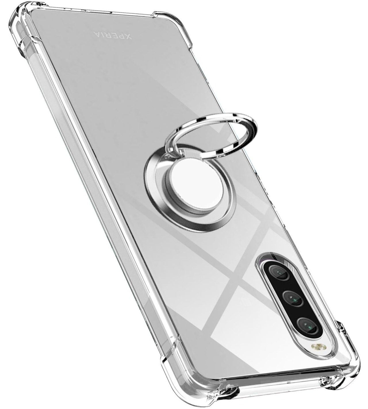 Xperia 10 V ケース リング TPU 薄型 軽量シリコン 耐衝撃 指紋防止 車載ホルダー対応 防塵 一体型 人気 携帯カバー(クリア)