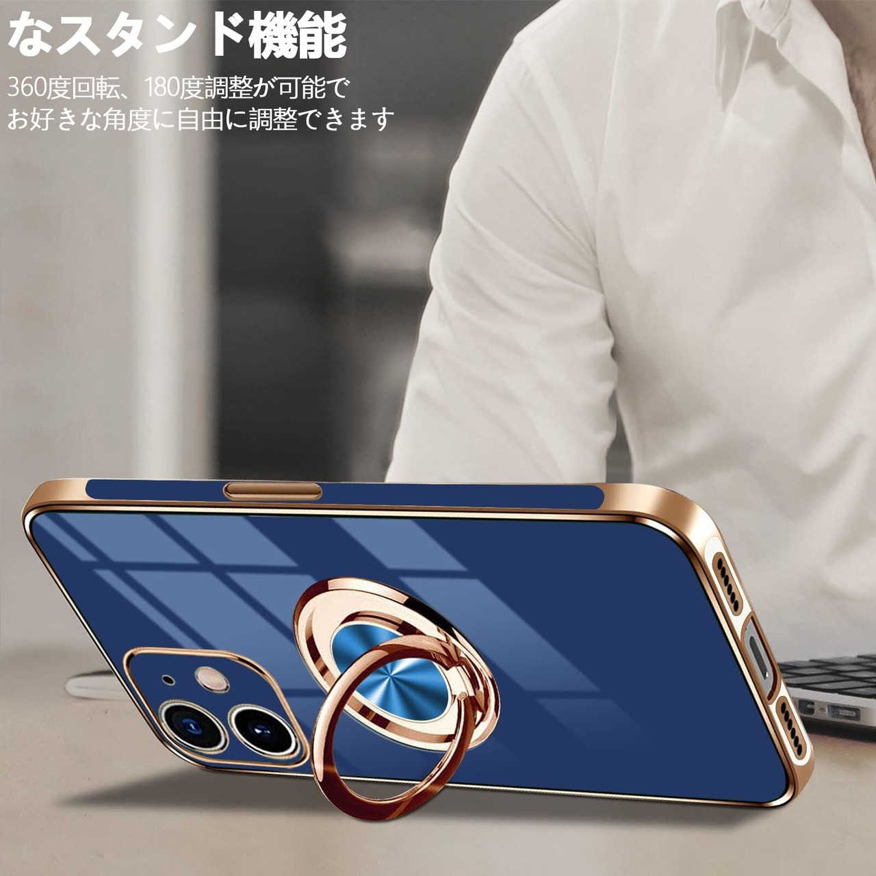iPhone 8 Plus 用ケース iPhone 7 Plus 用ケース リング付き メッキ加工 クリア TPU 耐衝撃 驚くほどの手触り 車載ホルダー対応 軽量 薄型 レンズ保護 マット感 人気 落下防止 アイフォン8P/7P 用 スマホケース 青 MD-6DDD-02-05