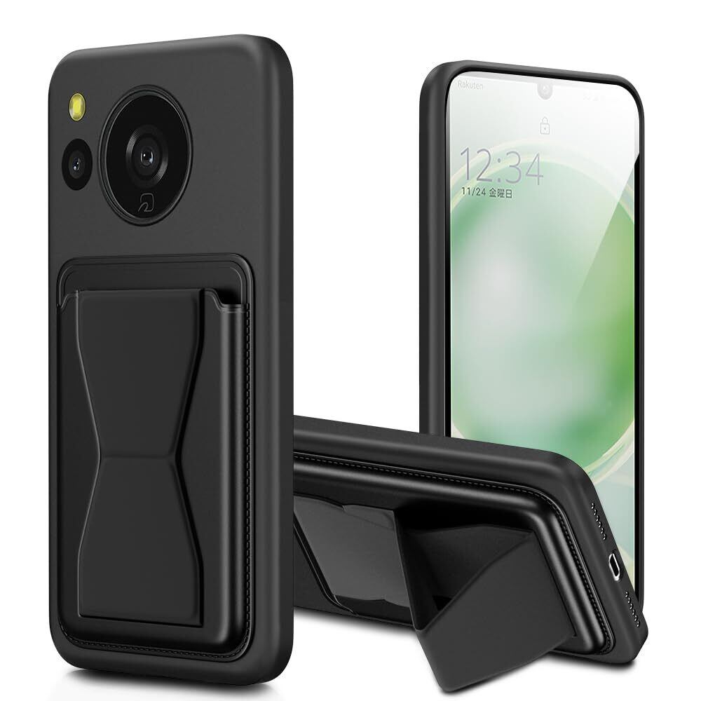 AQUOS sense8 ケース カード収納 スタンド付き アクオスセンス8 シリコン 携帯 ケース バンド付き スタンド機能 耐久 滑り止め 黑