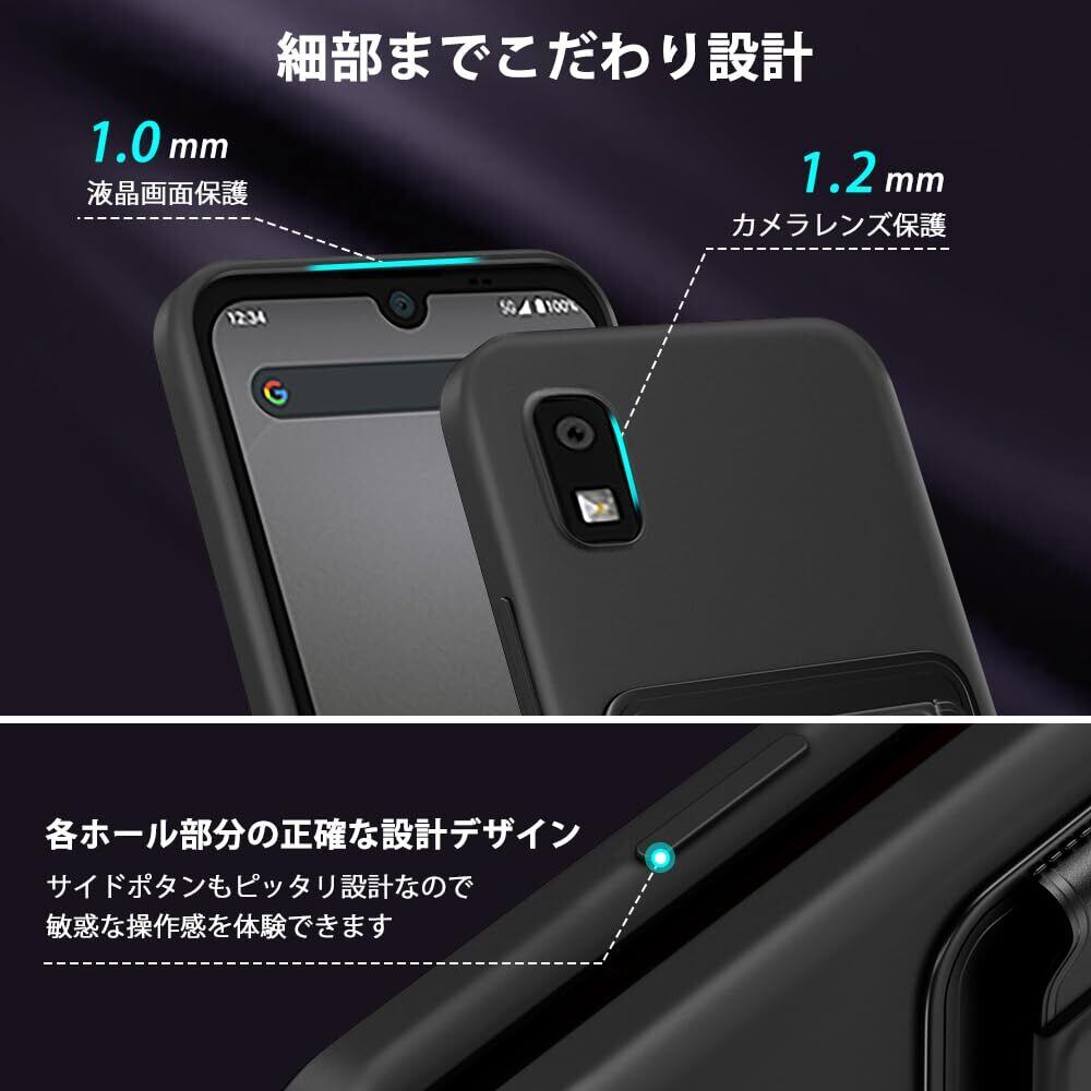 AQUOS Wish3 ケース SH-53D カード収納 スタンド付き スマホケース シリコン 携帯 ケース バンド付き スタンド機能 耐久 滑り止め 黑