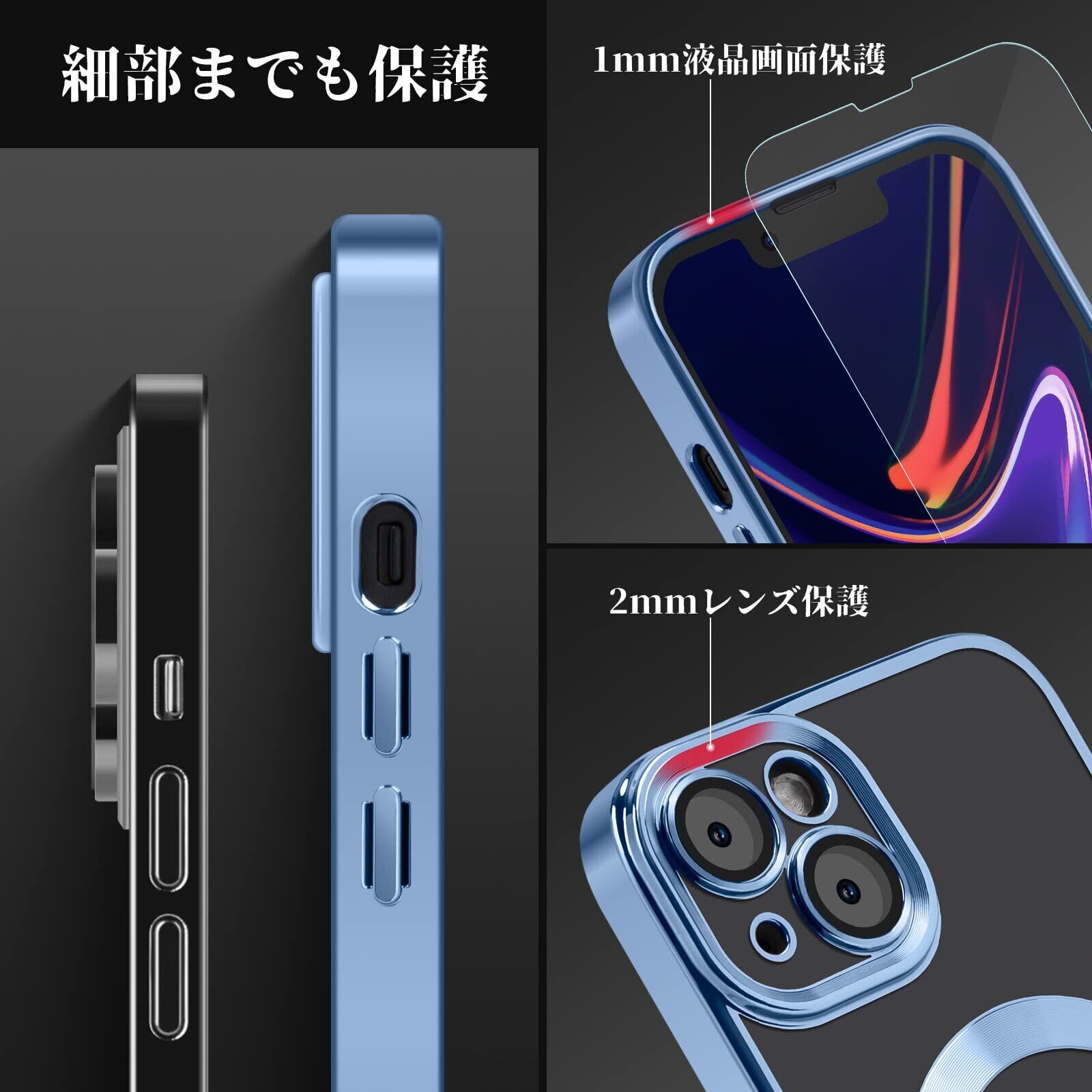 iPhone14 ケース MagSafe対応 2023新型 iPhone 14用 ケース耐衝撃 米軍MIL規格 アイフォン14用 指紋防止 黄変なし 耐久性 iPhone 14 カバー 磁気ケース6.1インチ ワイアレス充電対応 (ブルー)