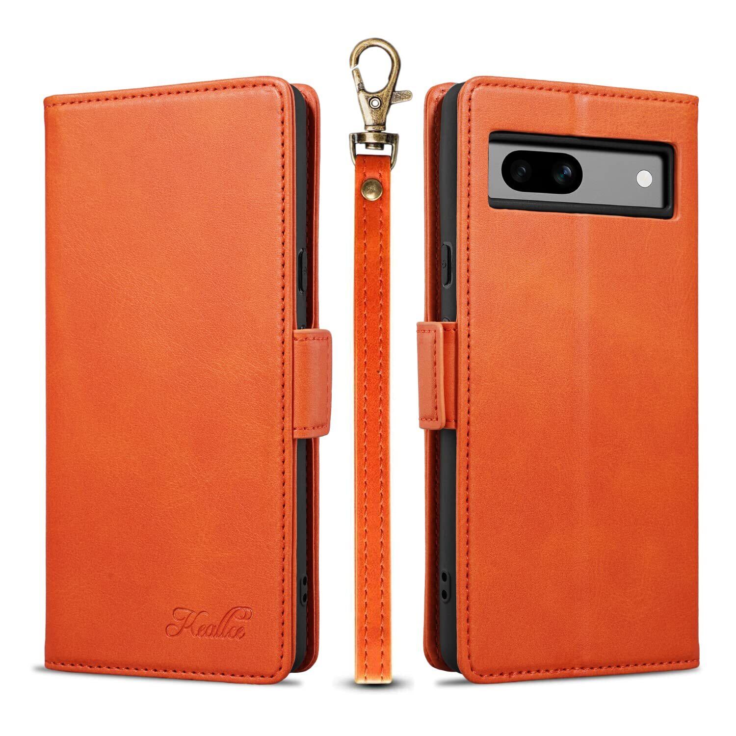 Keallce 対応 Pixel 7a ケース 手帳型 Pixel7a 手帳型 ケース ピクセル 7a ケース カバー Pixel7a ストラップ付き スタンド機能付き 財布型 カード収納 マグネット式 レザー 耐摩擦 耐衝撃 肌触り良い 全面保護 スマホケース Pixel 7a 専用手帳型ケース 6.1inch オレンジ