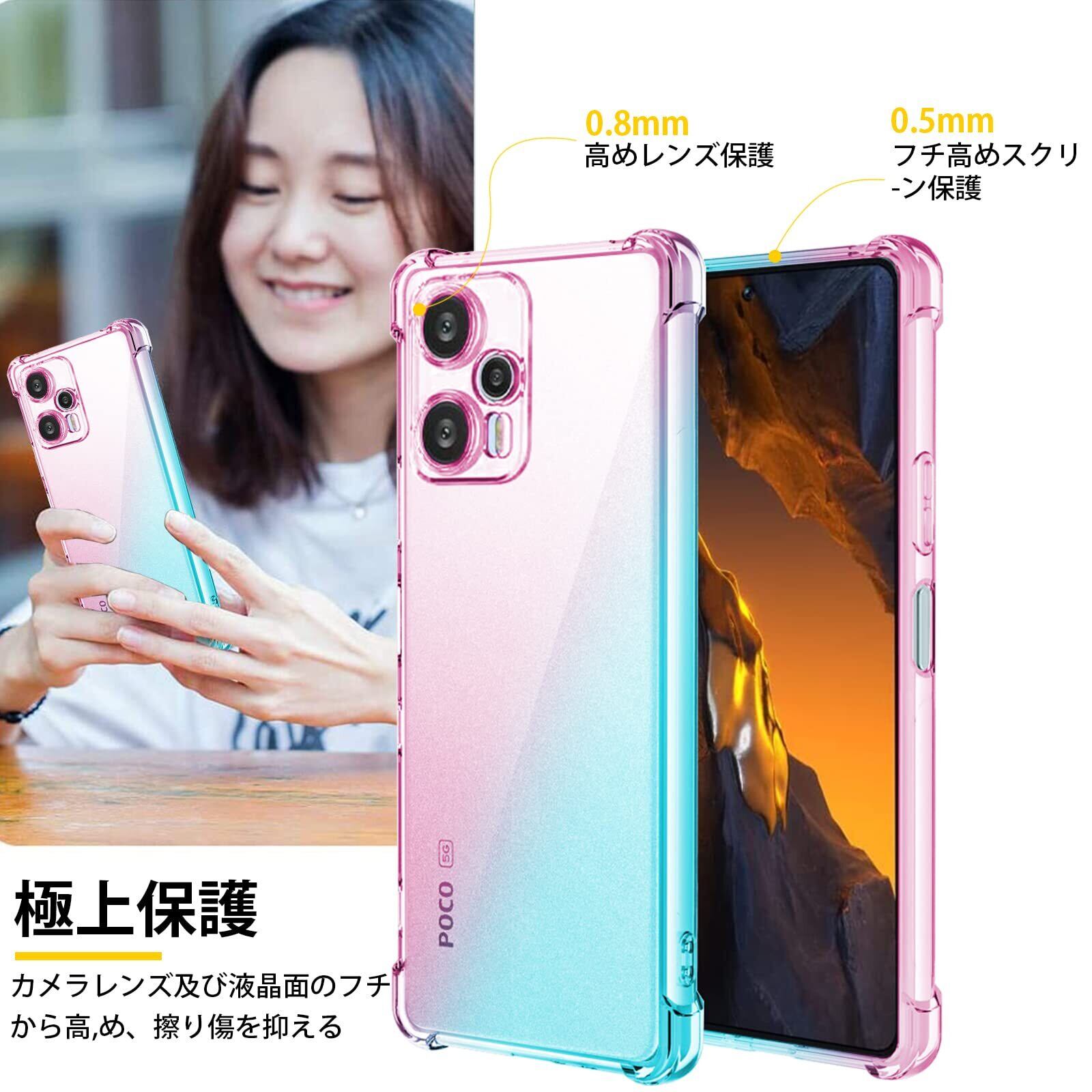 【在庫処分】Xiaomi POCO F5 ケース クリア TPU 薄型 軽量 グラデーション色 ケース 耐衝撃 ストラップホール付き 滑り止め 黄変防止 防塵 一体型 Qi充電 人気 携帯カバー (ピンクグリーン) | BOSSO