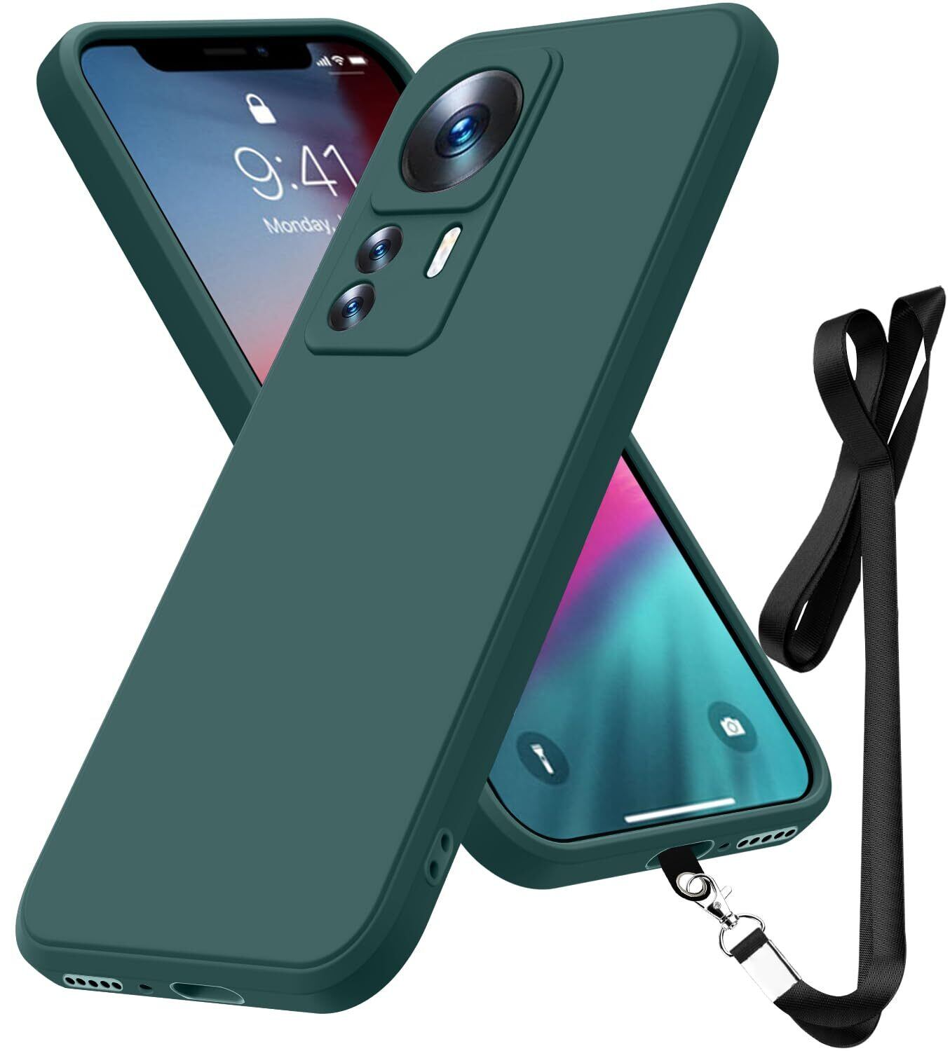 Xiaomi 12T Pro ケース シリコン 薄型 軽量 ケース 縄掛け ストラップ付き 携帯ケース 落下防止 全面保護 TPU 取り外し可能 紛失防止 ワイヤレス充電対応 マット質感 さらさら肌触り 可愛い シャオミMi 12T Proカバー ソフトケース ダークグリーン JP1-56