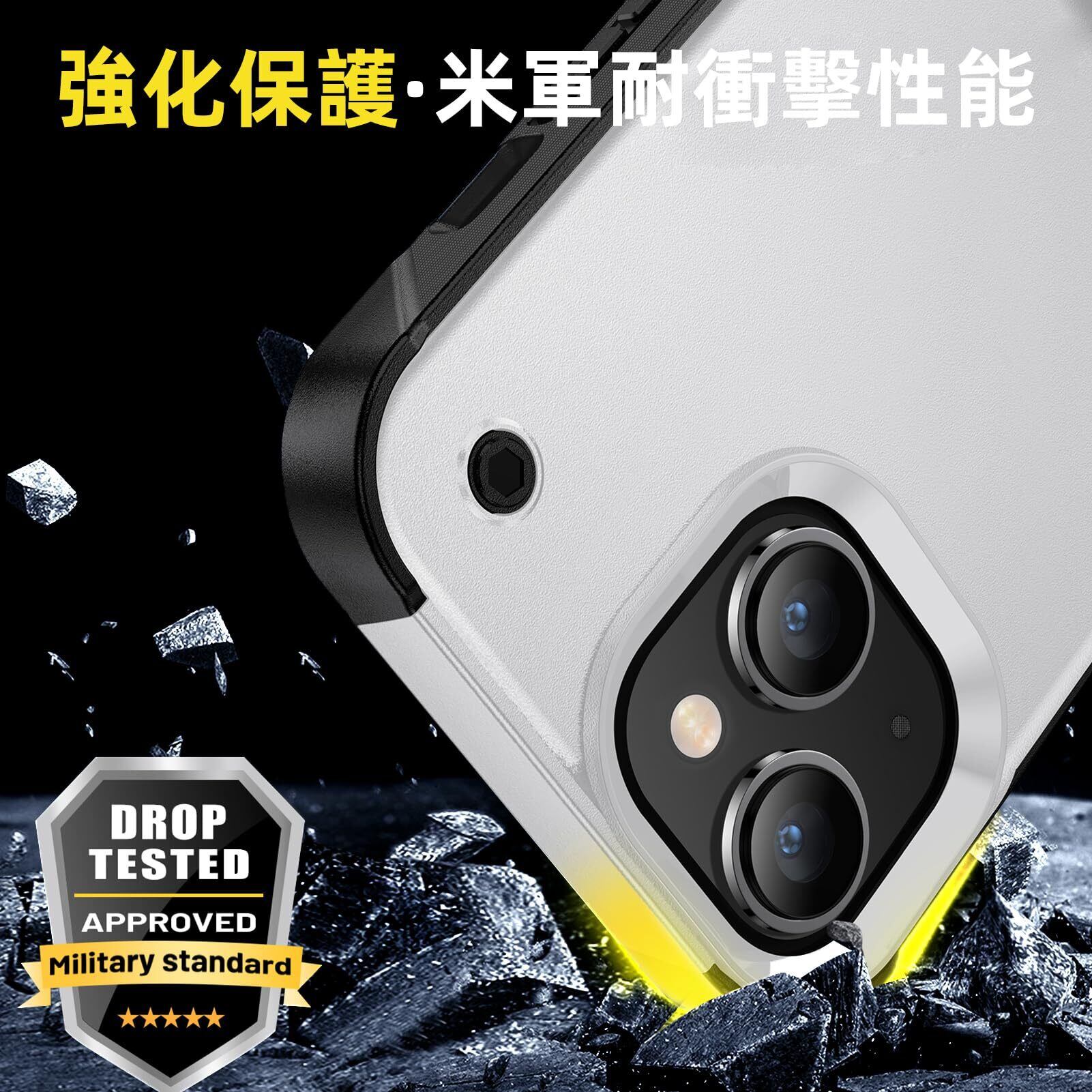 iPhone 13 Pro max ケース リング 耐衝撃 米軍MIL規格取得 リング付きレンズ保護 落下防止 滑り止め TPU+PC スマホケース おしゃれ 耐磨 白 LR-12-ip13pm-02
