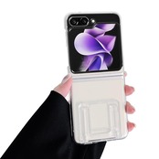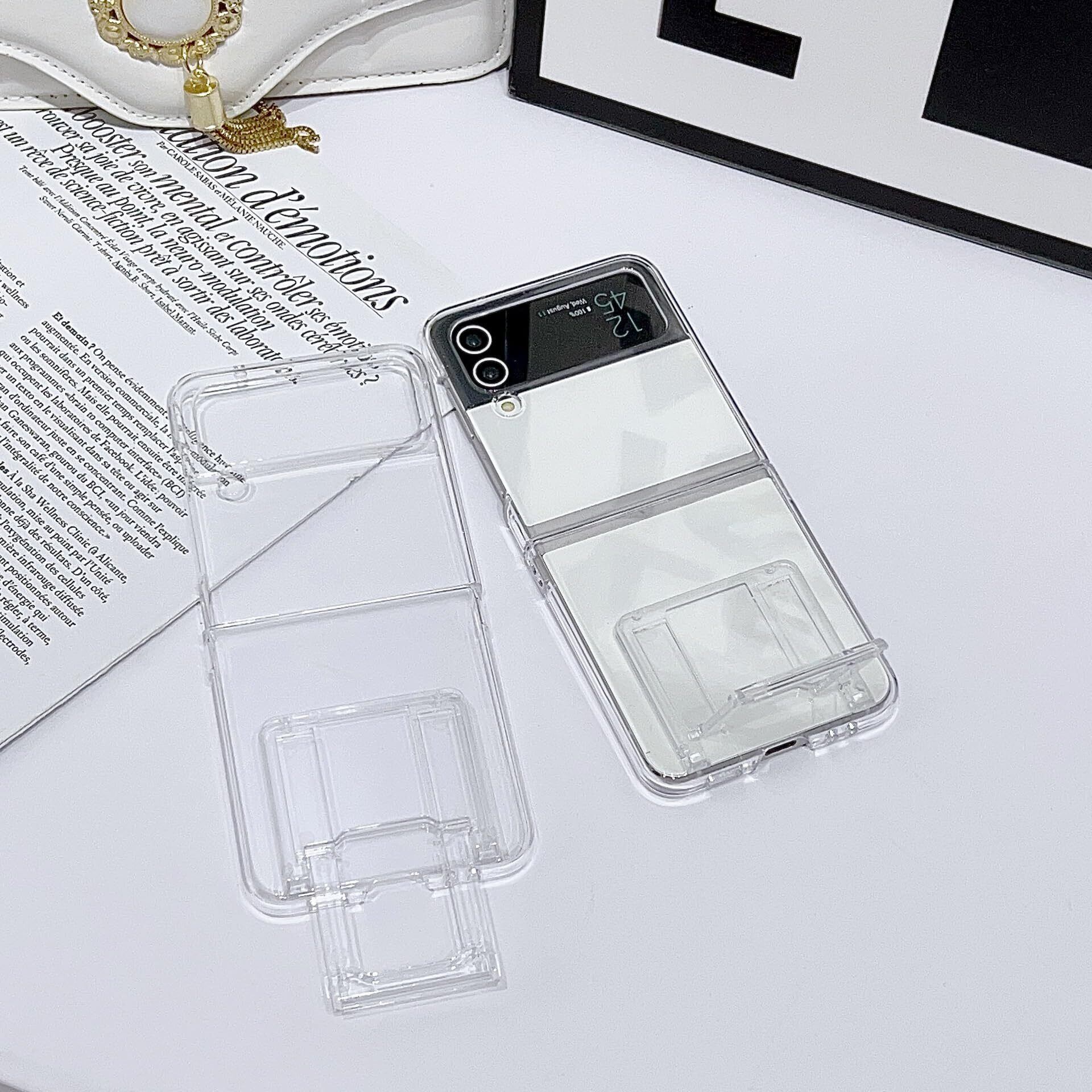 Galaxy Z Flip5 ケース クリア スタンド付き Samsung ギャラクシー Z Flip5 スマホケース 透明 シリコン レンズ保護 軽量 薄型 ストラップホール付き ワイヤレス充電 (全透明)