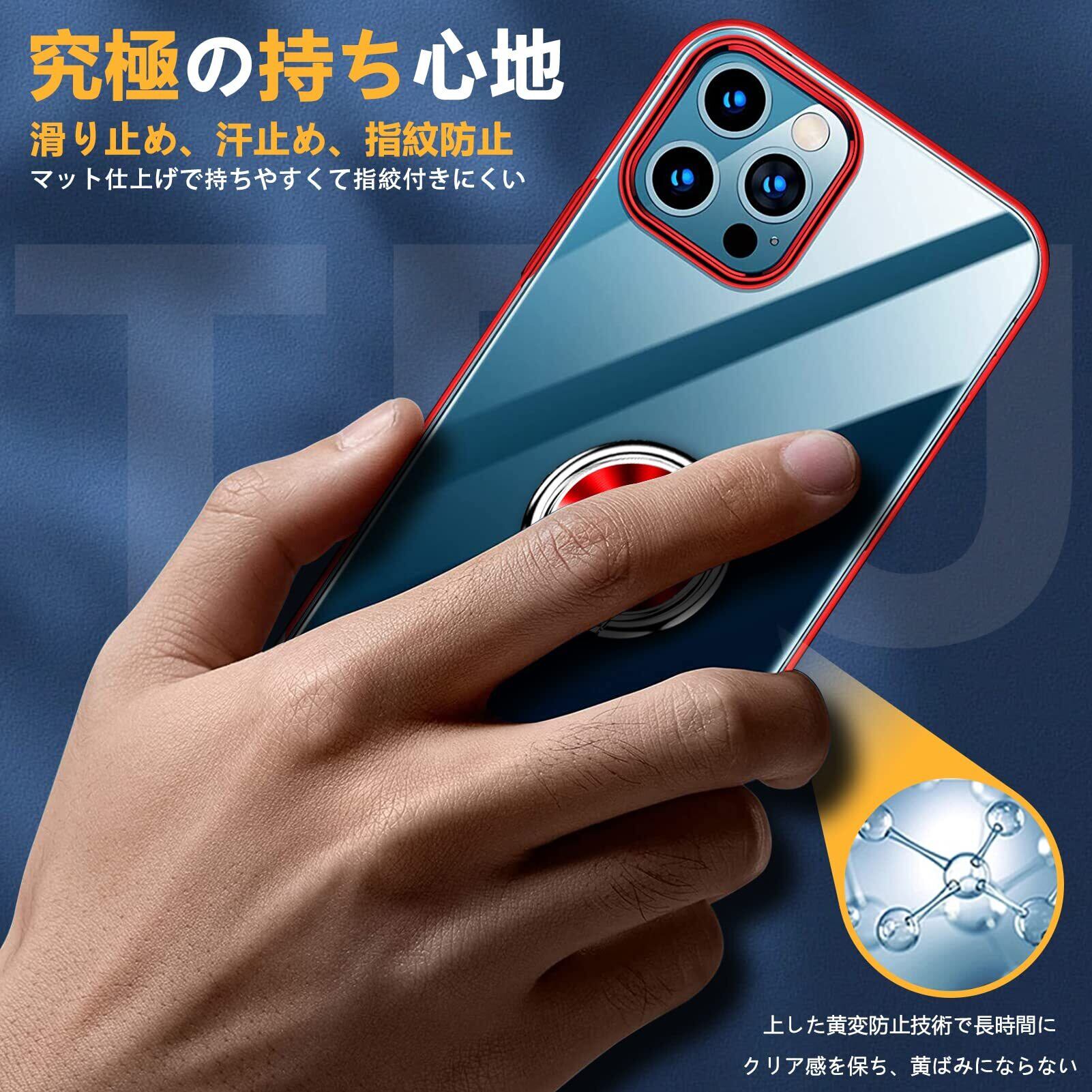 Xperia 1 III ケース リング付き クリア Xperia 1 III ケース TPU 透明 メッキ加工 耐衝撃 車載ホルダー対応 スタンド機能 防塵 薄型 軽量 落下防止 一体型 変形防止 Xperia 1 III カバー 赤 MJJ-1055-18-02