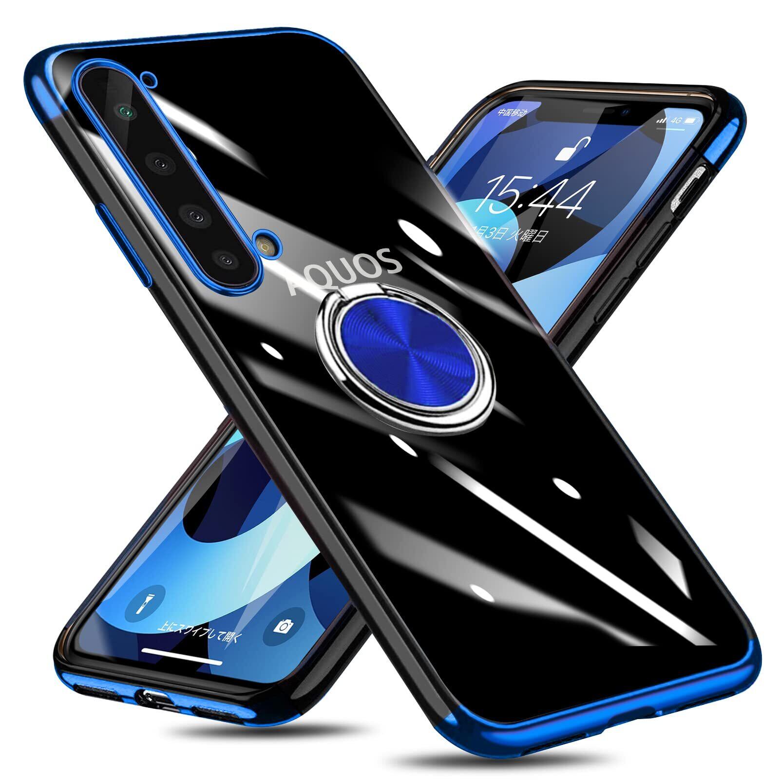 AQUOS R5G ケース リング クリア 透明 耐衝撃 AQUOS R5G SH-51A SHG01 カバー 専用 スリム ストラップホール付き スタンド機能 TPU 車載ホルダー対応 落下防止 防塵 薄型 軽量 一体型 変形防止 全面保護ケース アクオスR5G カバー 青 W-DDYX-18-07