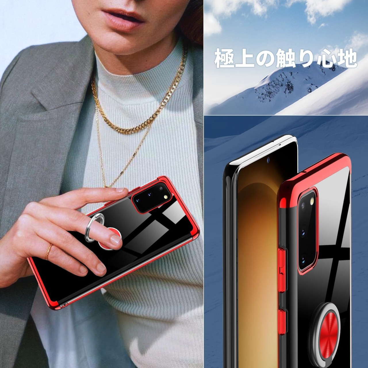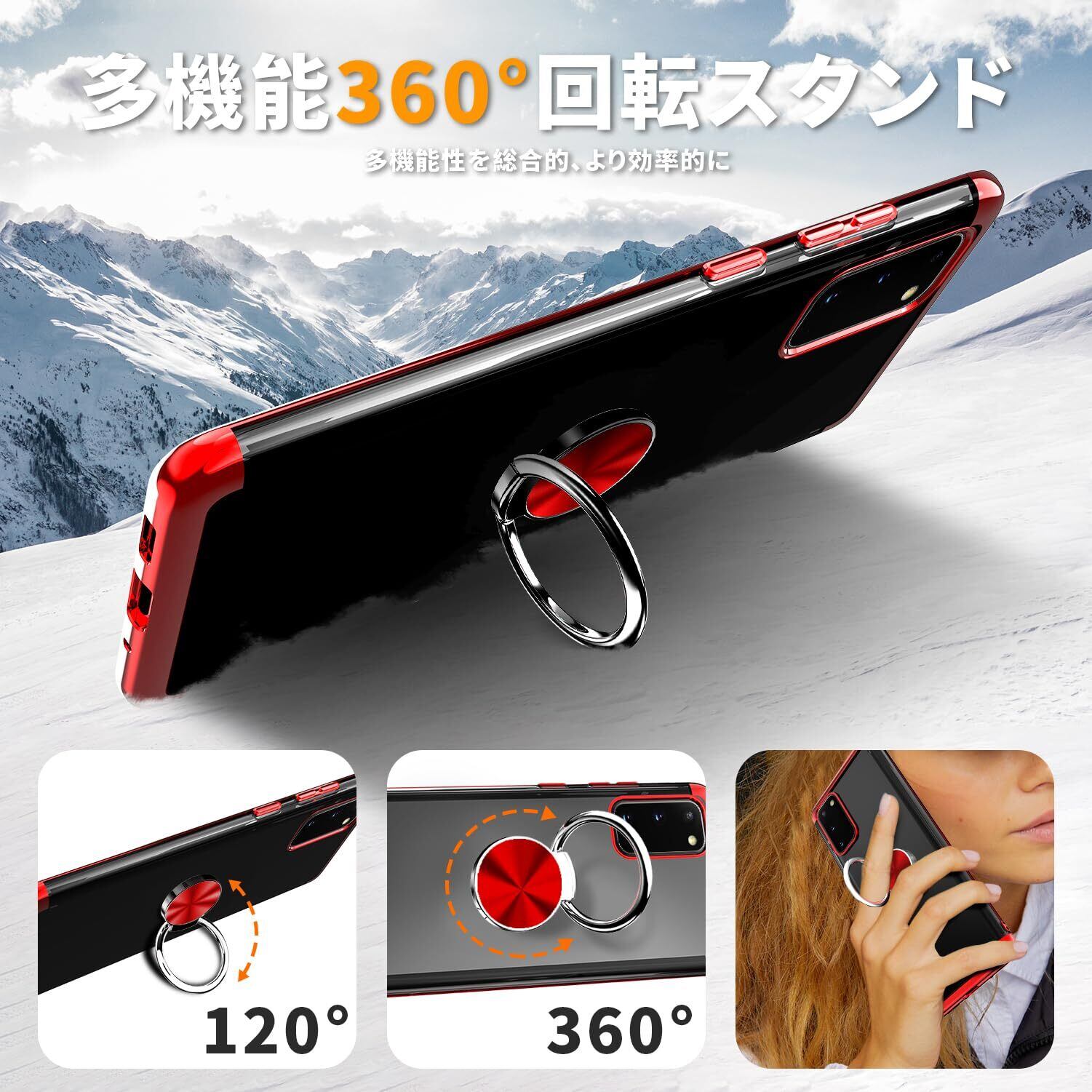 AQUOS sense3 ケースsense3 lite sense3 basic Android One S7 ケース リング クリア 耐衝撃 SH-02M/SHV45/SH-RM12 カバー 透明 TPU 軽量 薄型 ストラップホール付き 黄変防止 360°回転 車載ホルダー 赤 2-sen3-03